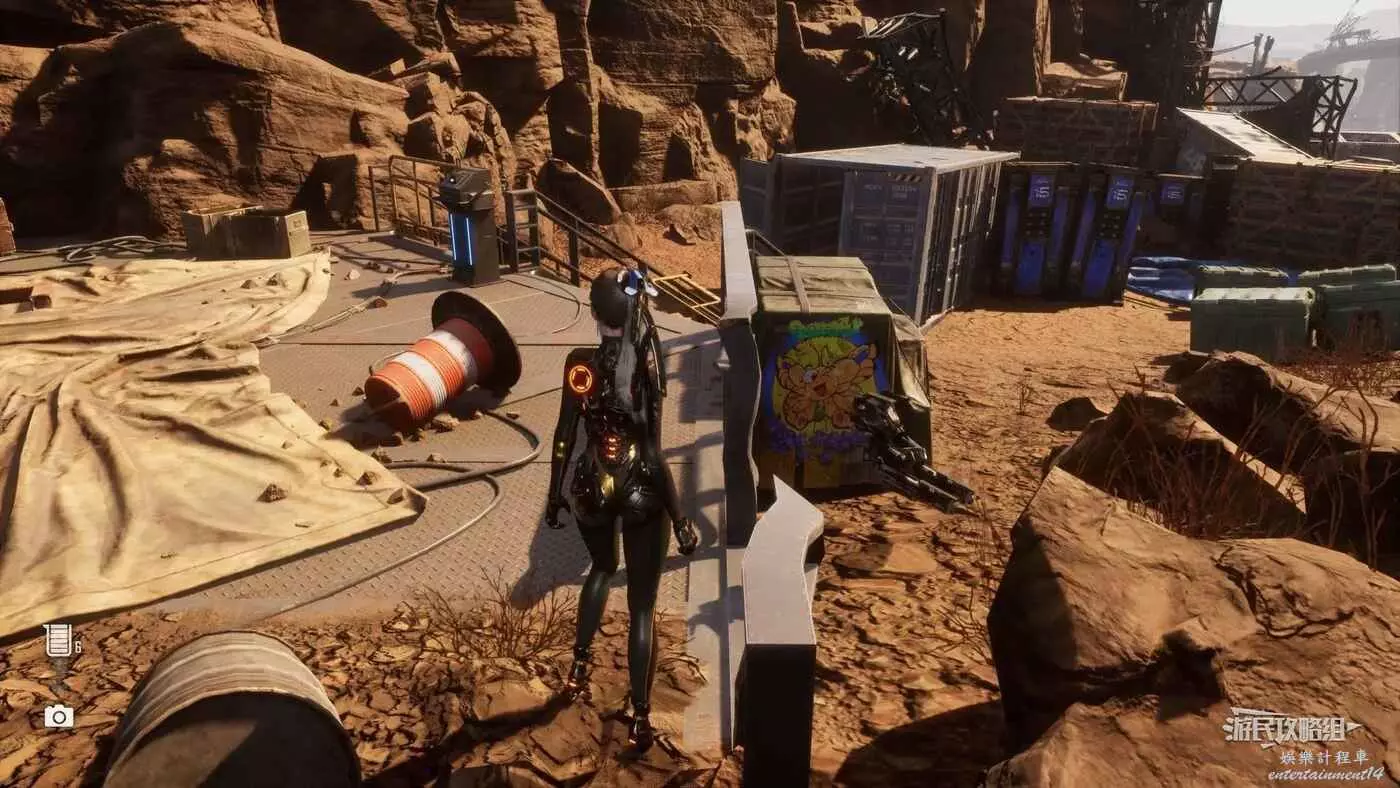 在廢土東邊頂部有個大圓球的建築附近,從建築前方的OPEN牌子右側繞到懸崖邊(有許多紅色集裝箱),繼續往岩壁方向走,在一個有鐵絲網的金屬架子背面可以看到這個蝴蝶。