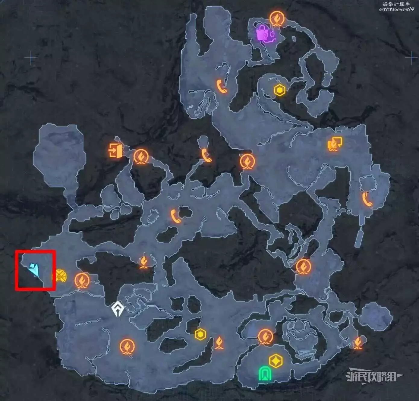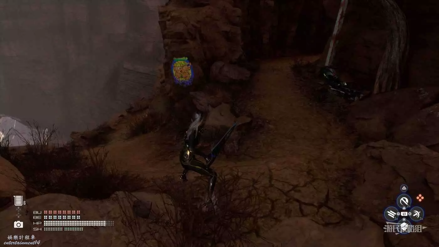 在廢土廢品場營地旁邊的岩壁上可以看到兩塊紅牆,貼牆跑到達對面,在右手邊岩壁之間有一條小路,繼續貼牆跑穿過三塊紅色牆到達對面,有一條小路,沿著小路一直走,在轉彎的位置岩壁上即可看到這個蝴蝶。