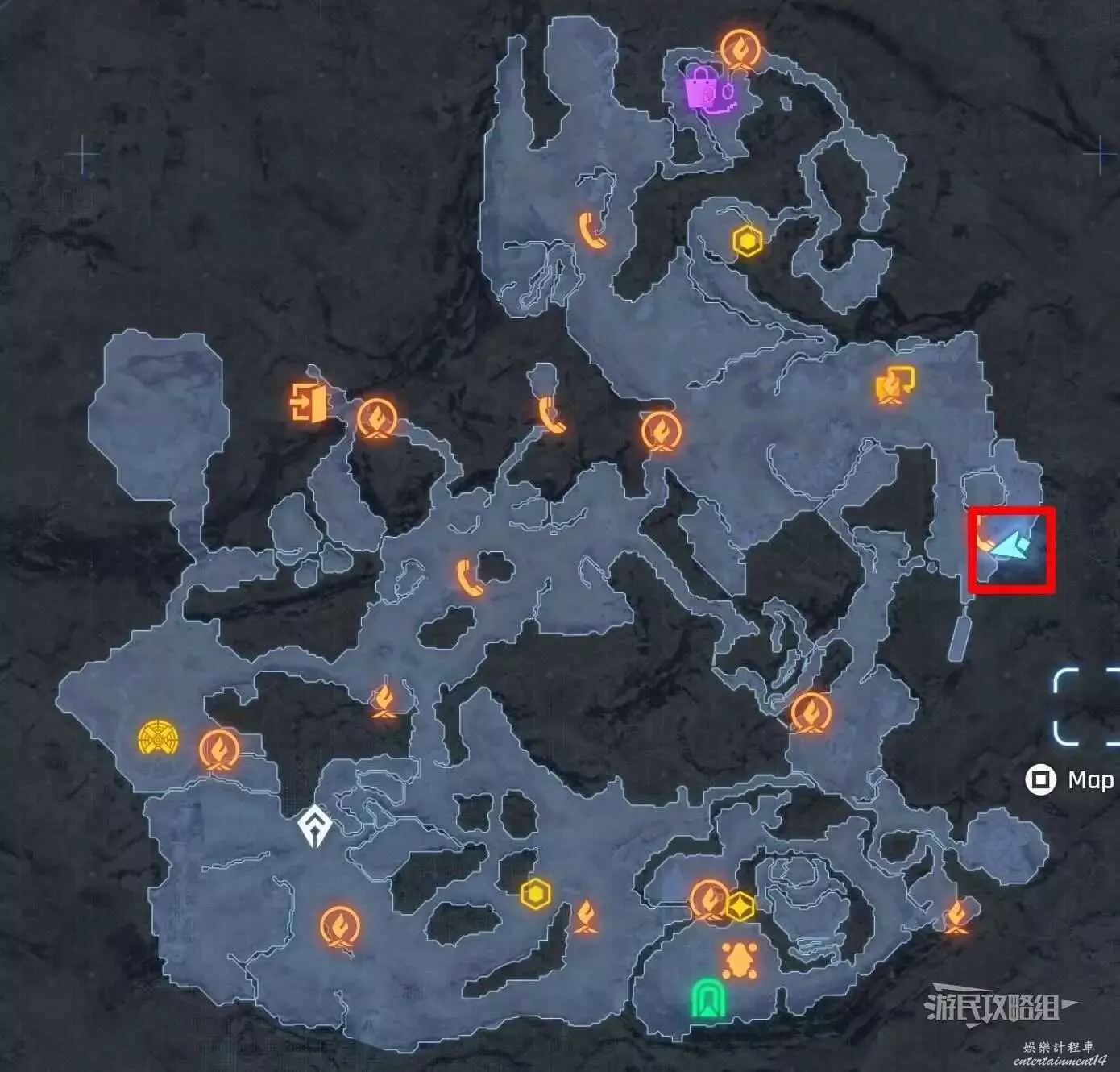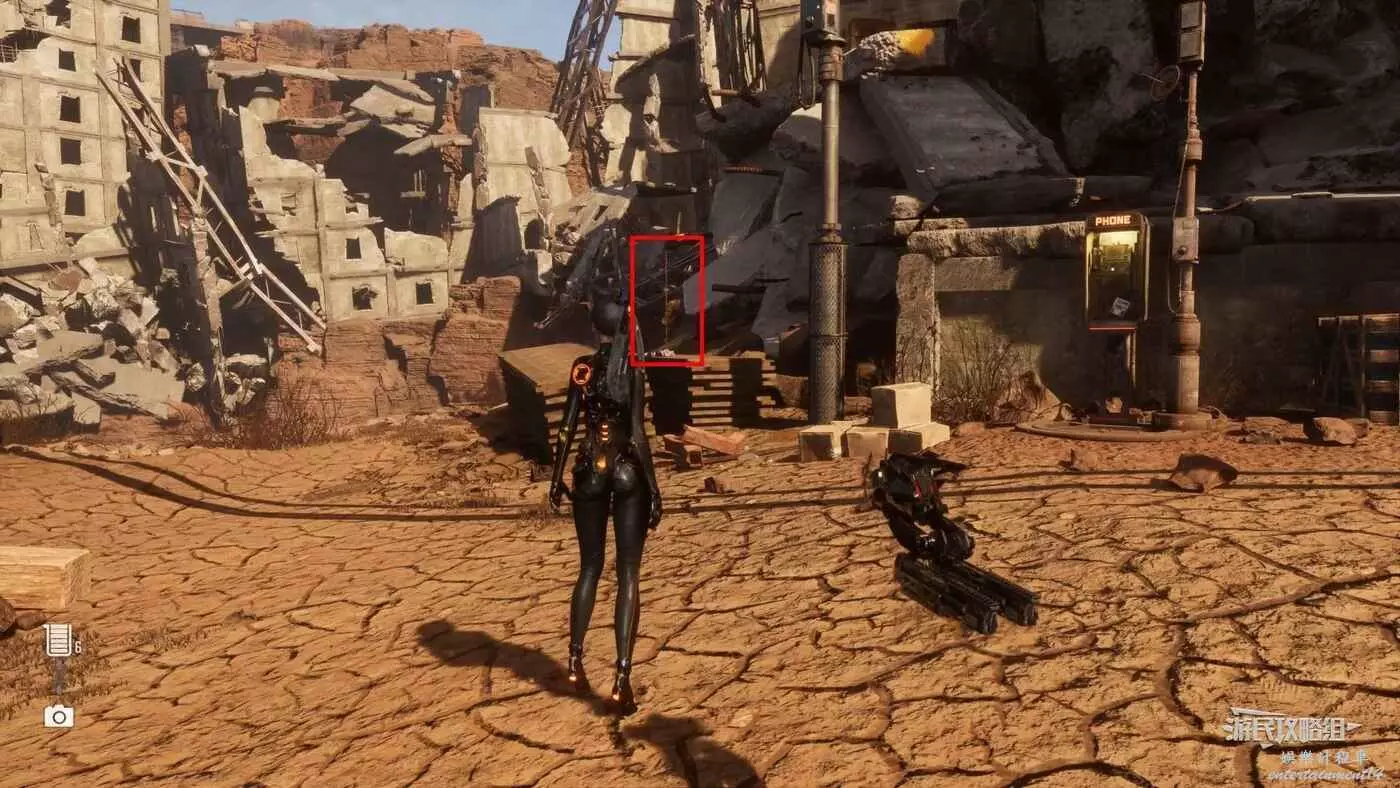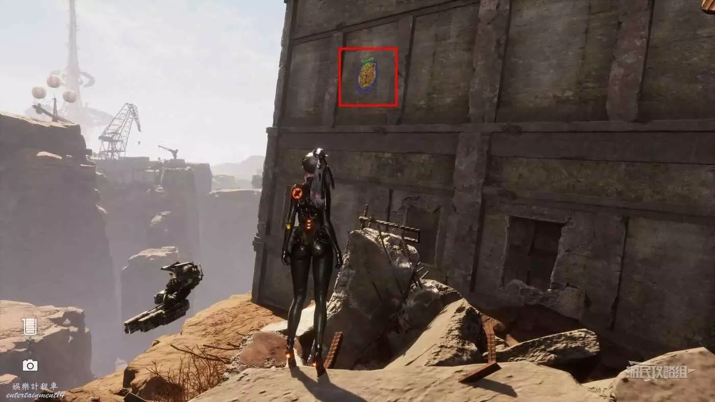 在廢土東側傳送點,面對電話亭往右走到懸崖邊,貼著懸崖往建築廢墟後方走,到達另一側後回頭就能在廢墟牆上高處看到這個蝴蝶。