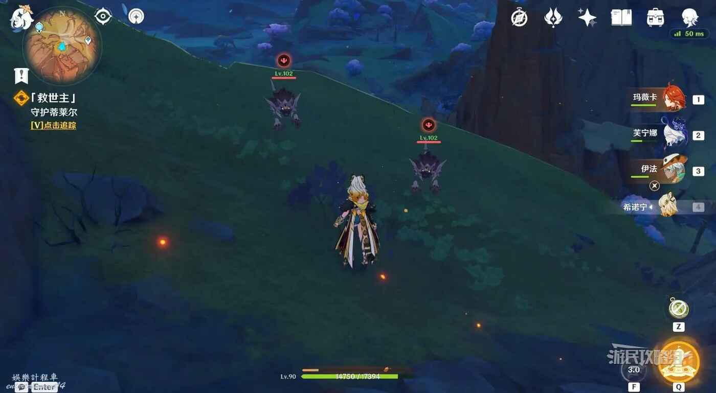 與目標位置的藍色光點互動,進入任務專屬秘境區域,開始推進任務。