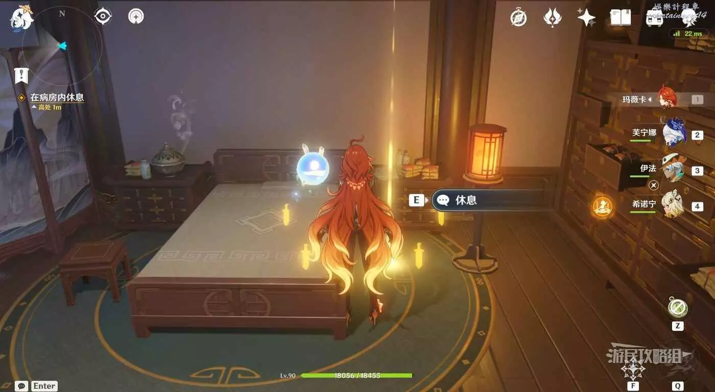 與床鋪互動休息,觸發劇情。