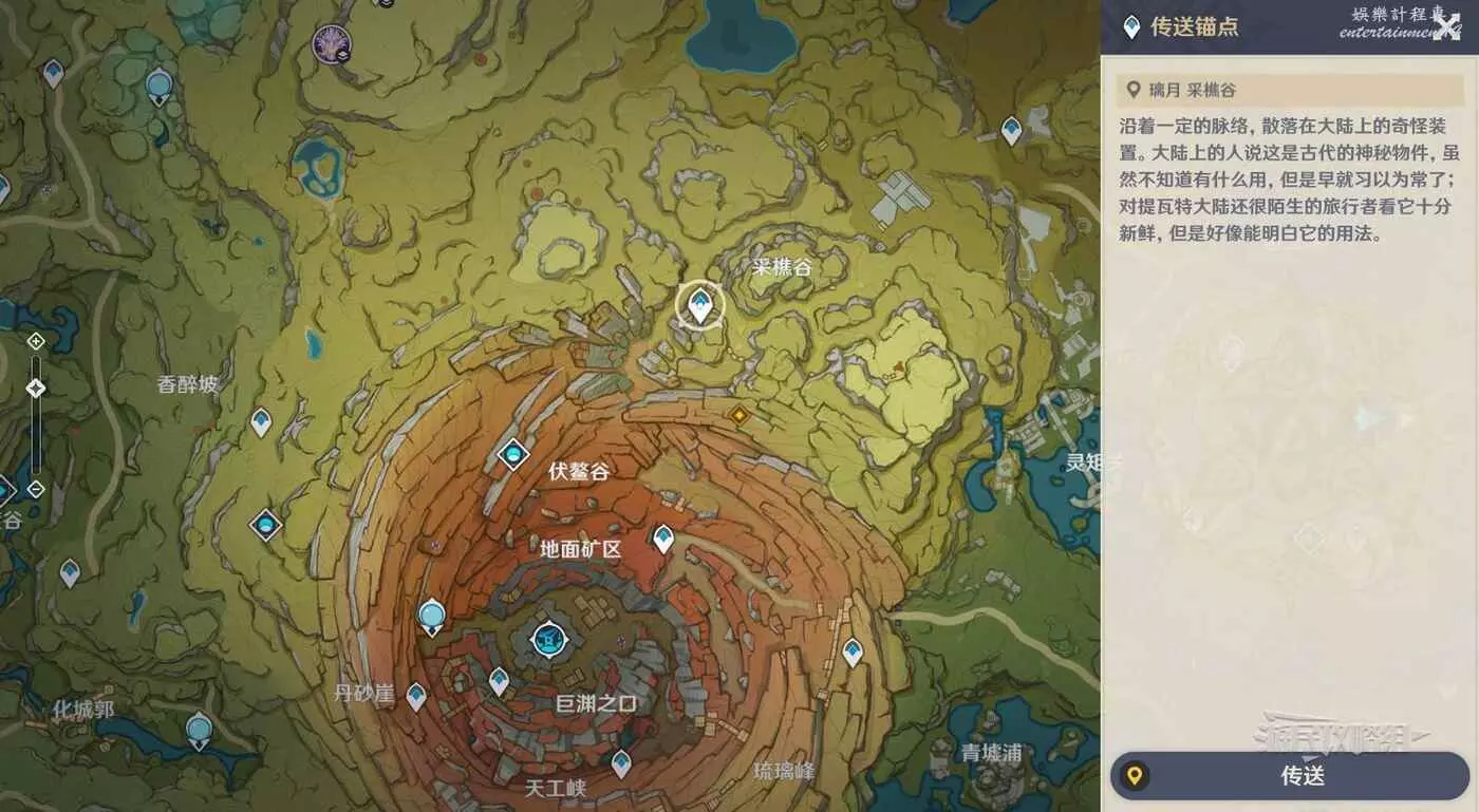 離開絲柯克的心相世界後,離開不蔔廬的病房,傳送到層岩巨淵的采樵谷傳送錨點,前往目標位置。