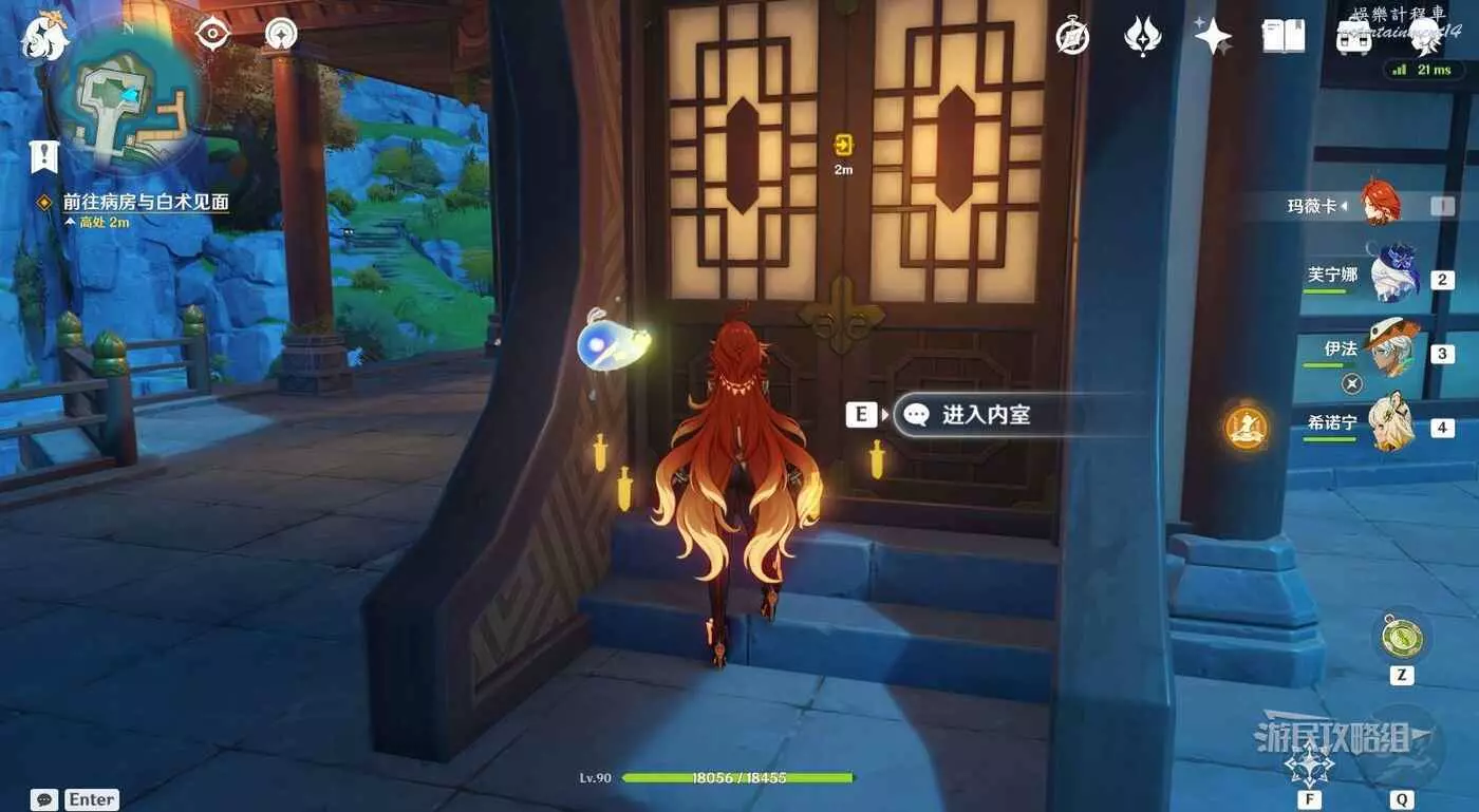 對話結束後,傳送到璃月港傳送錨點,前往不蔔廬,從側門進入內室。
