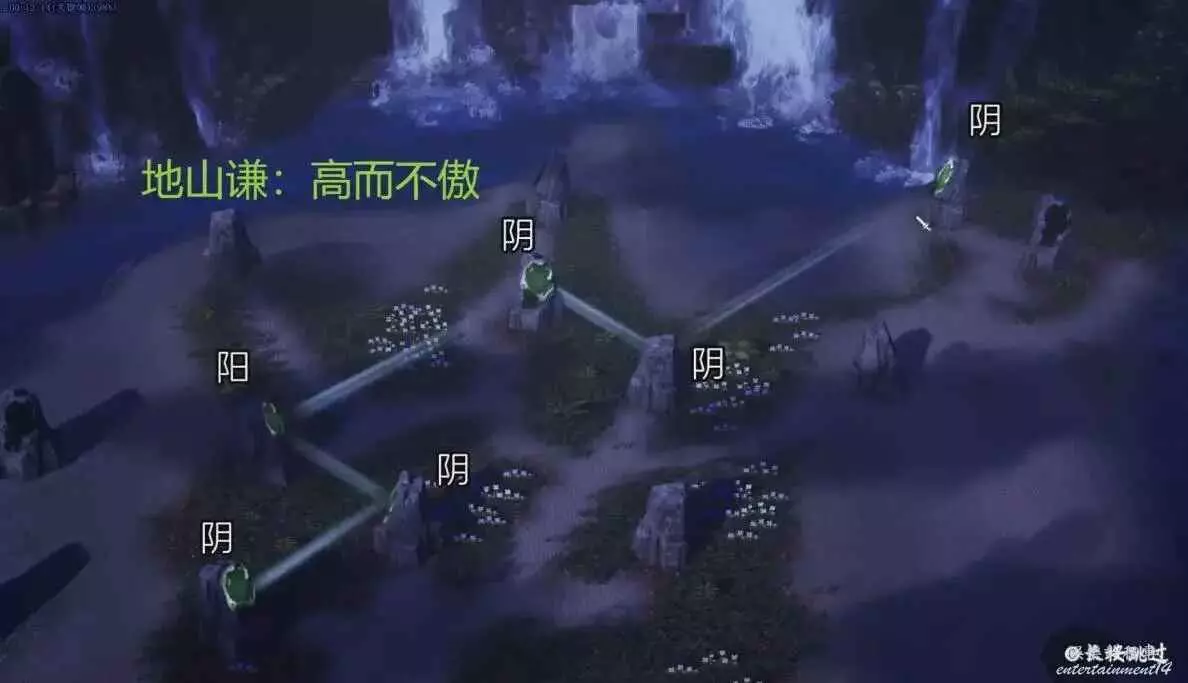 第二關,如果你隊伍裡面有白錦,他會提示你,高而不傲,其實前面的劇情文字也有提到青雲主人的性格。那這裡可以在步微月那裡得到,就是地山謙這個卦象,而地山謙是陰陰陽,陰陰陰。同樣根據一三陽數,零二陰數來推就好了。要注意,第一個因為地圖變動,就已經確定了是陰數,在宇文逸對話中可以知道這點。