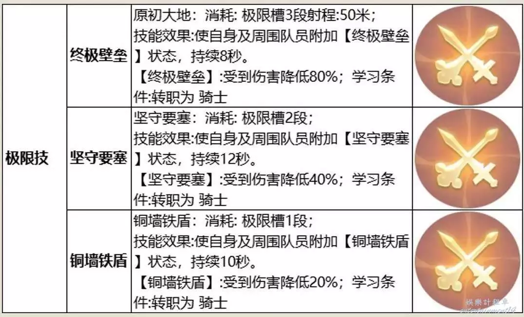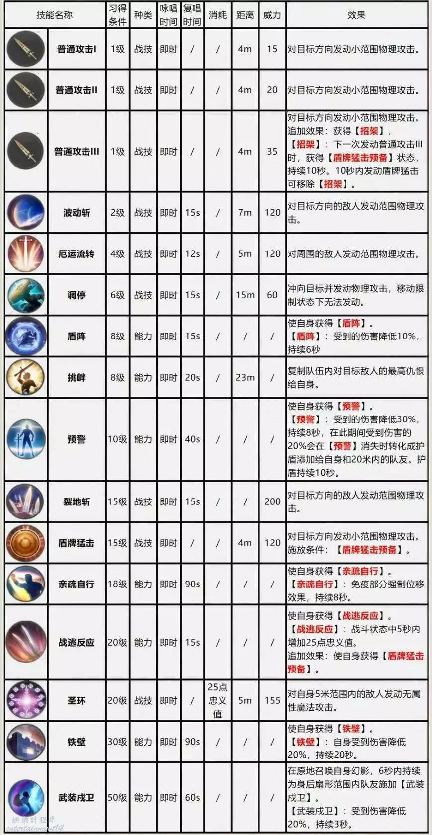 盾陣、鐵壁、預警、武裝戍衛為減傷技能,根據副本實戰情況按需開啟即可。