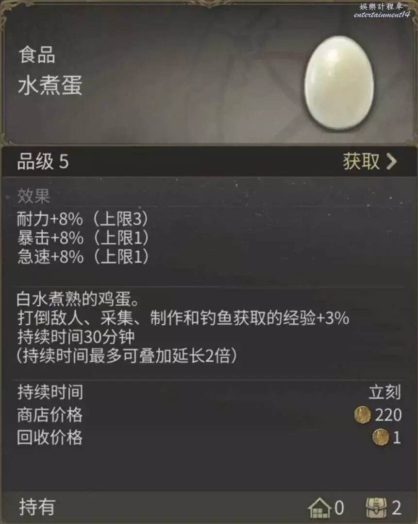 3,所有的食品都可以使打倒敵人、採集、製作和釣魚獲取的經驗增加3%,預約遊戲送的一大堆水煮蛋終於可以派上用場啦。