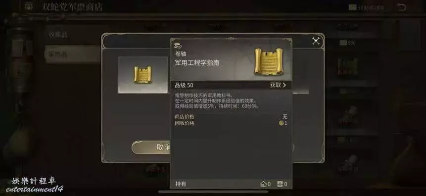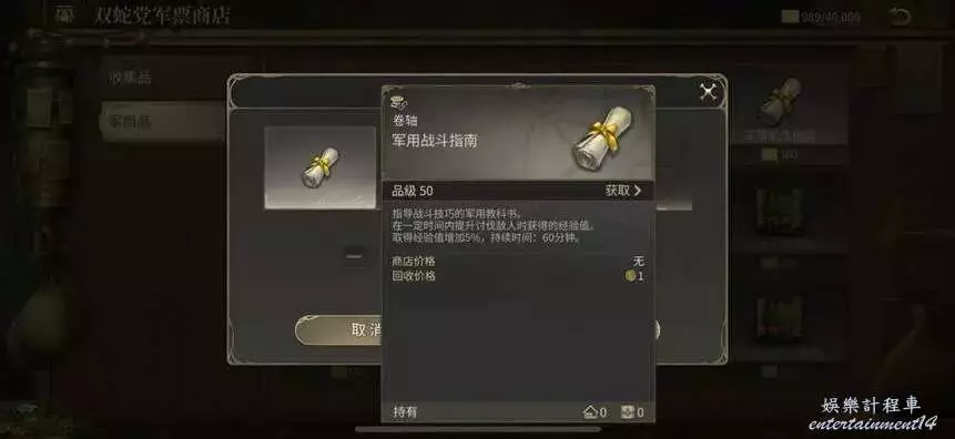 5,軍用指南,提升軍銜後在商會的軍票商店可以兌換各種類型經驗加成的軍用指南。