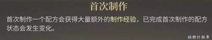 1,物品製作(素材採集):時會獲得一定量的經驗,這個經驗享受食品3%的加成,雖然加成不多,但是我們可以自己練一個烹調師,食物管夠!需要注意的是,每個物品首次被製作或被採集時,會有額外的經驗加成。有時間的話可以把製作筆記中的物品都製作一遍,把採集筆記中的物品都採集一遍,獲得經驗的同時還能完成相關成就。