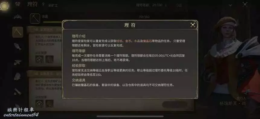 3,理符:每天淩晨5點獲得10個理符,交納理符物品可以獲得經驗和金幣,還有幾率獲得水晶和魔晶石。