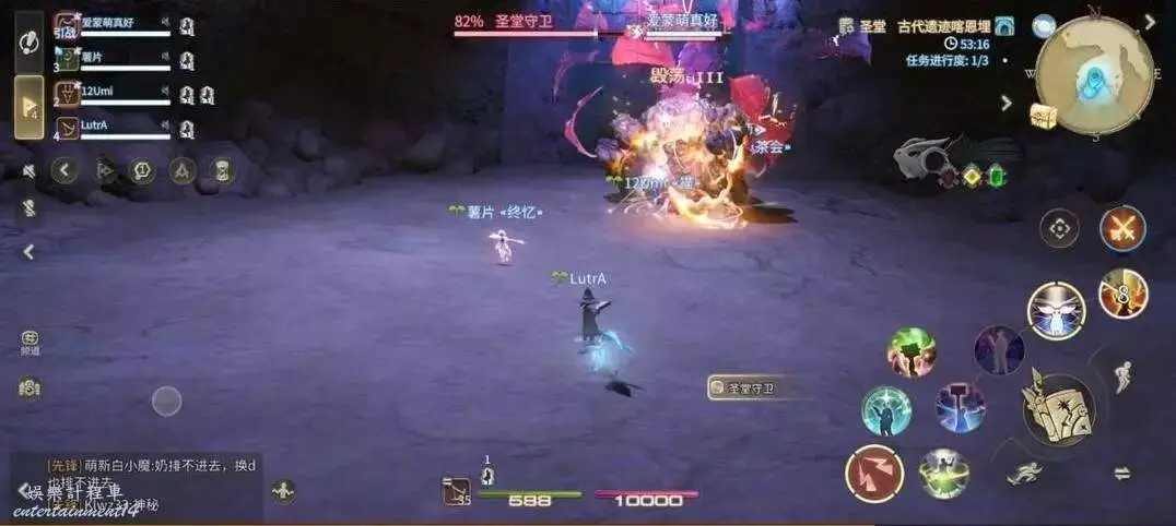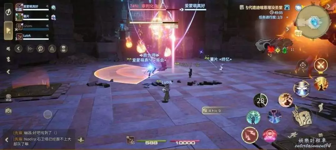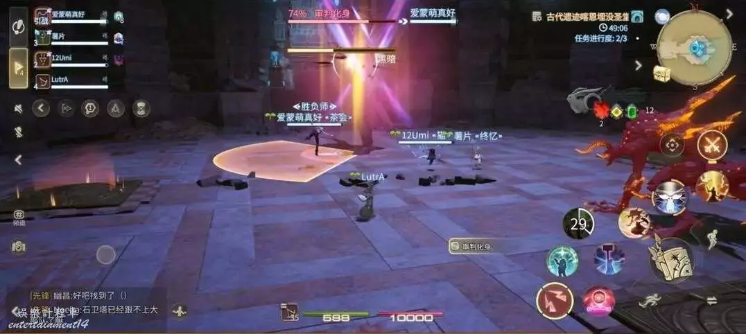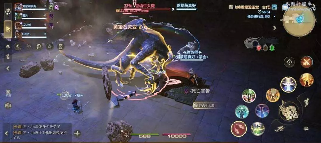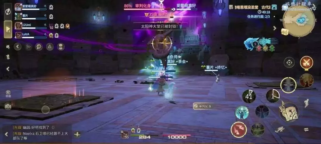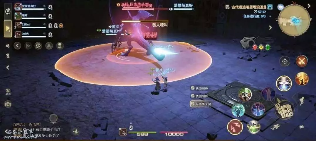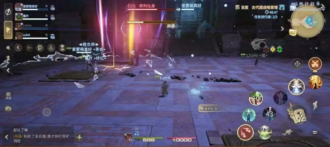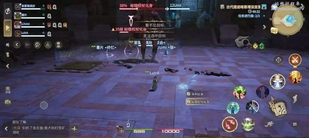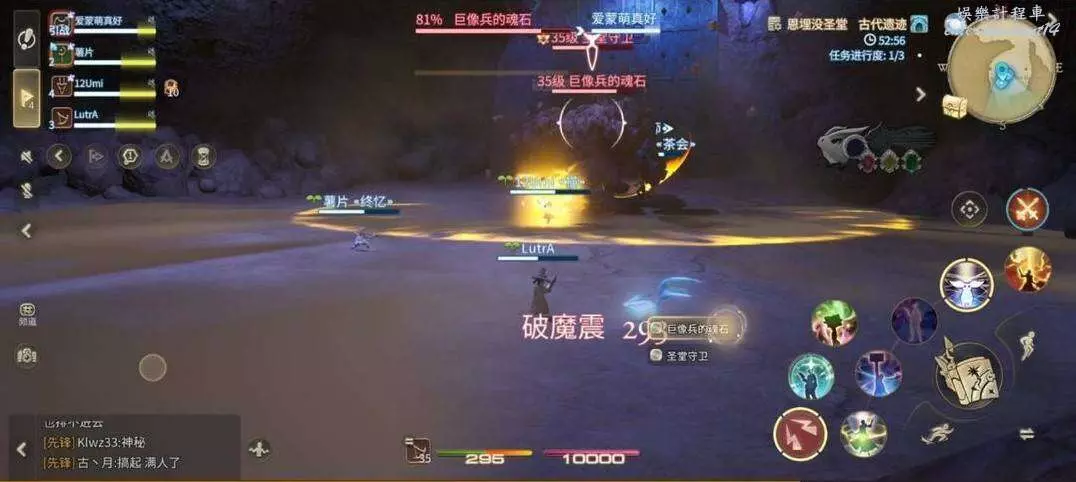 破魔震:對全場範圍釋放AOE,全體隊員注意集合站位元,方便治療職業恢復全隊血量。