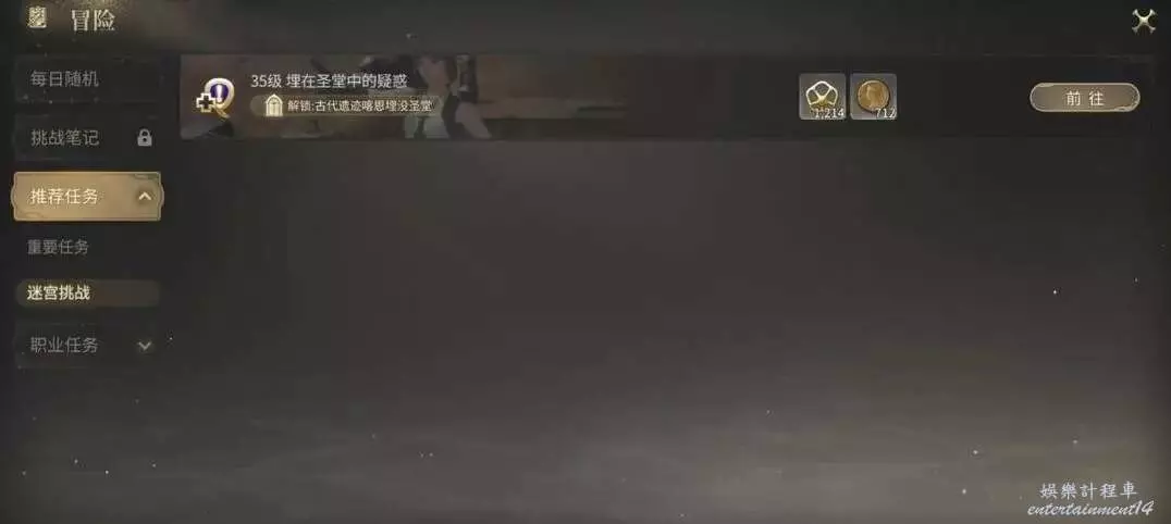 主線任務推進到35級後,可在推薦任務列表找到任務【埋在聖堂中的疑惑】