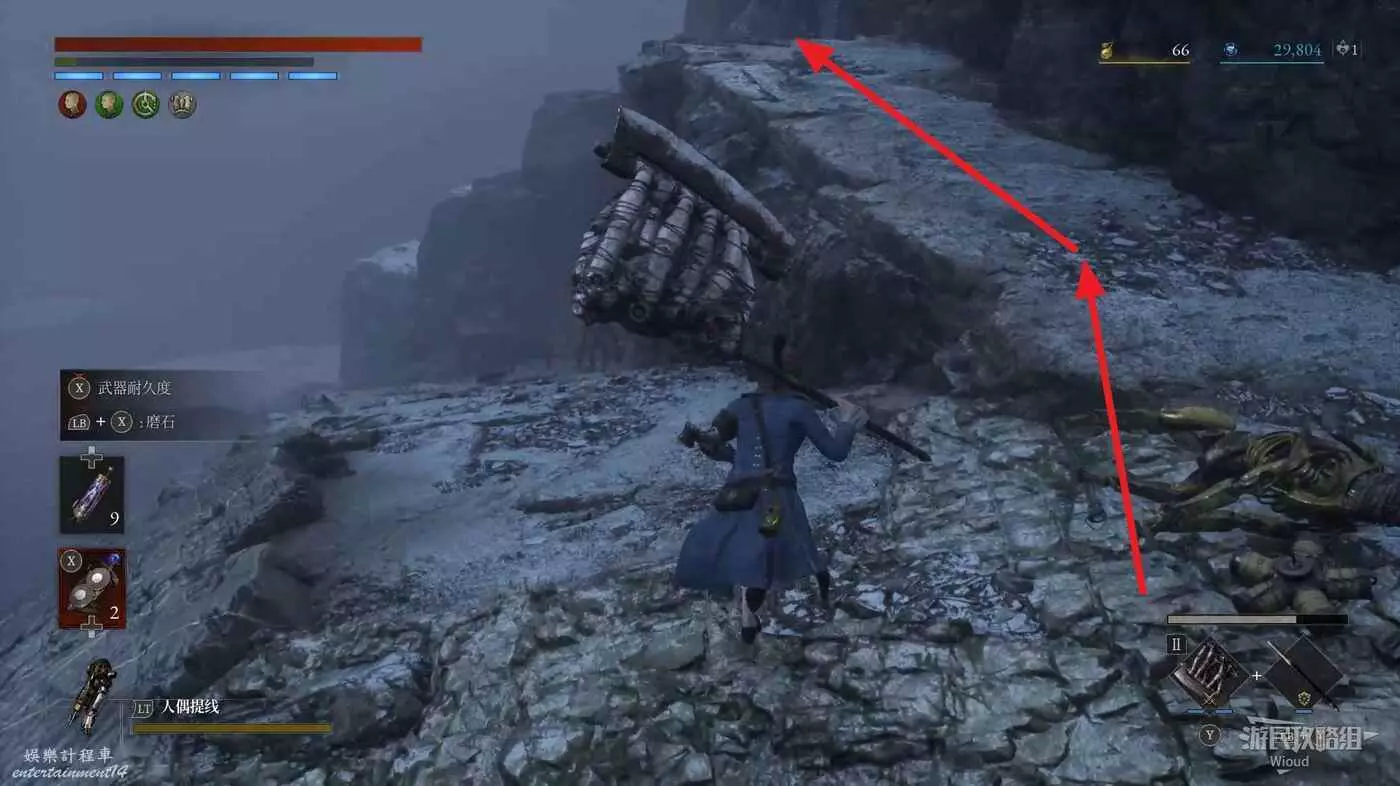 從蕾婭營地出發,往前走一段路啟動篝火【海邊懸崖】,繼續走,懸崖邊看到對面有個寶箱。