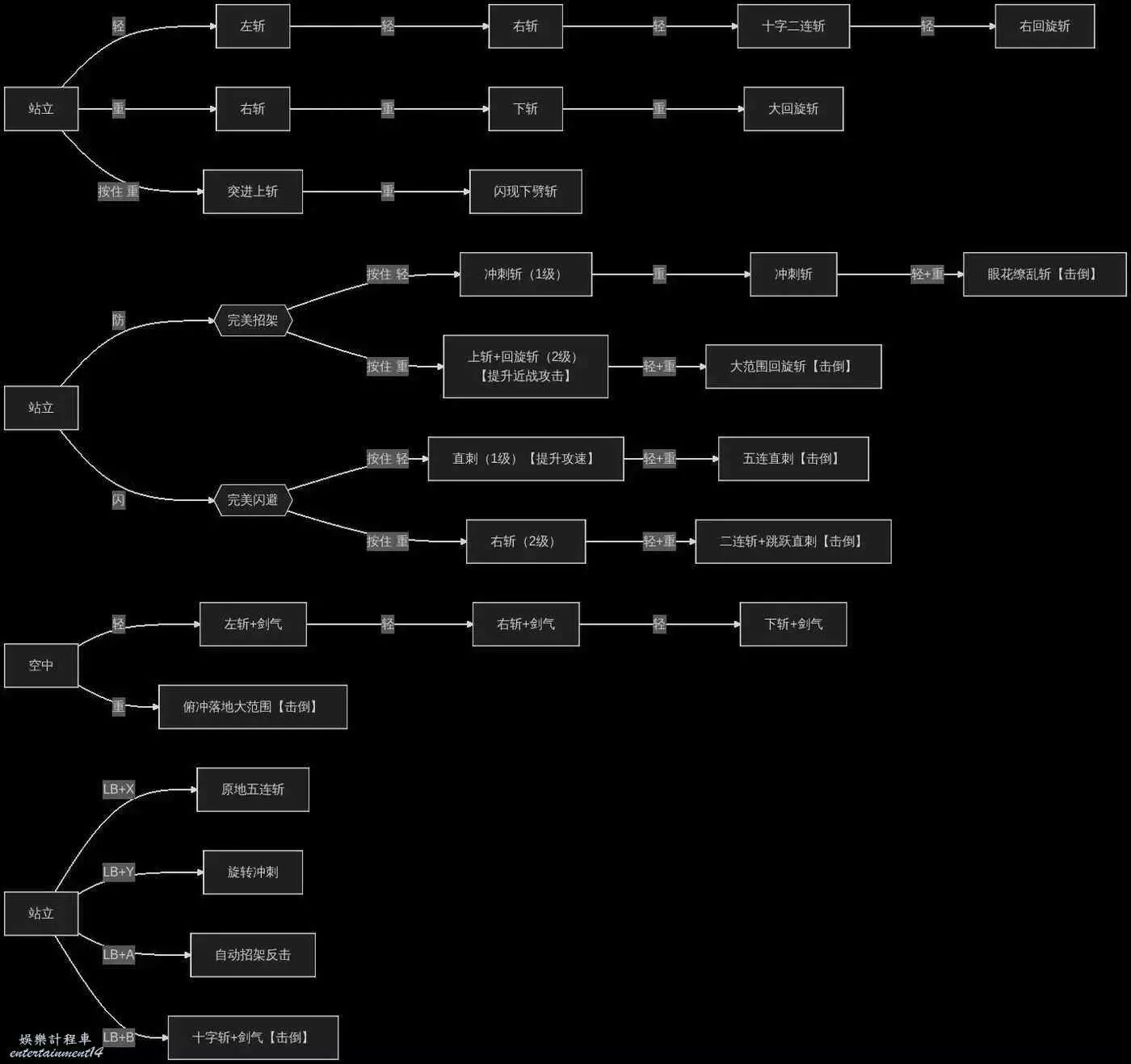 二連上踢和劍氣派生可以【擊倒】敵人,打斷敵人攻擊。一般可以接突進拉近距離,然後接一套4級普通連擊