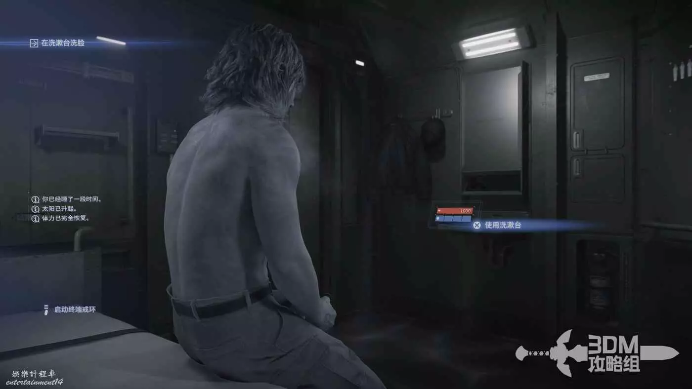 系統會讓我們去洗手間沐浴,鏡頭往這個方向看,按圓圈鍵就可以沐浴了。