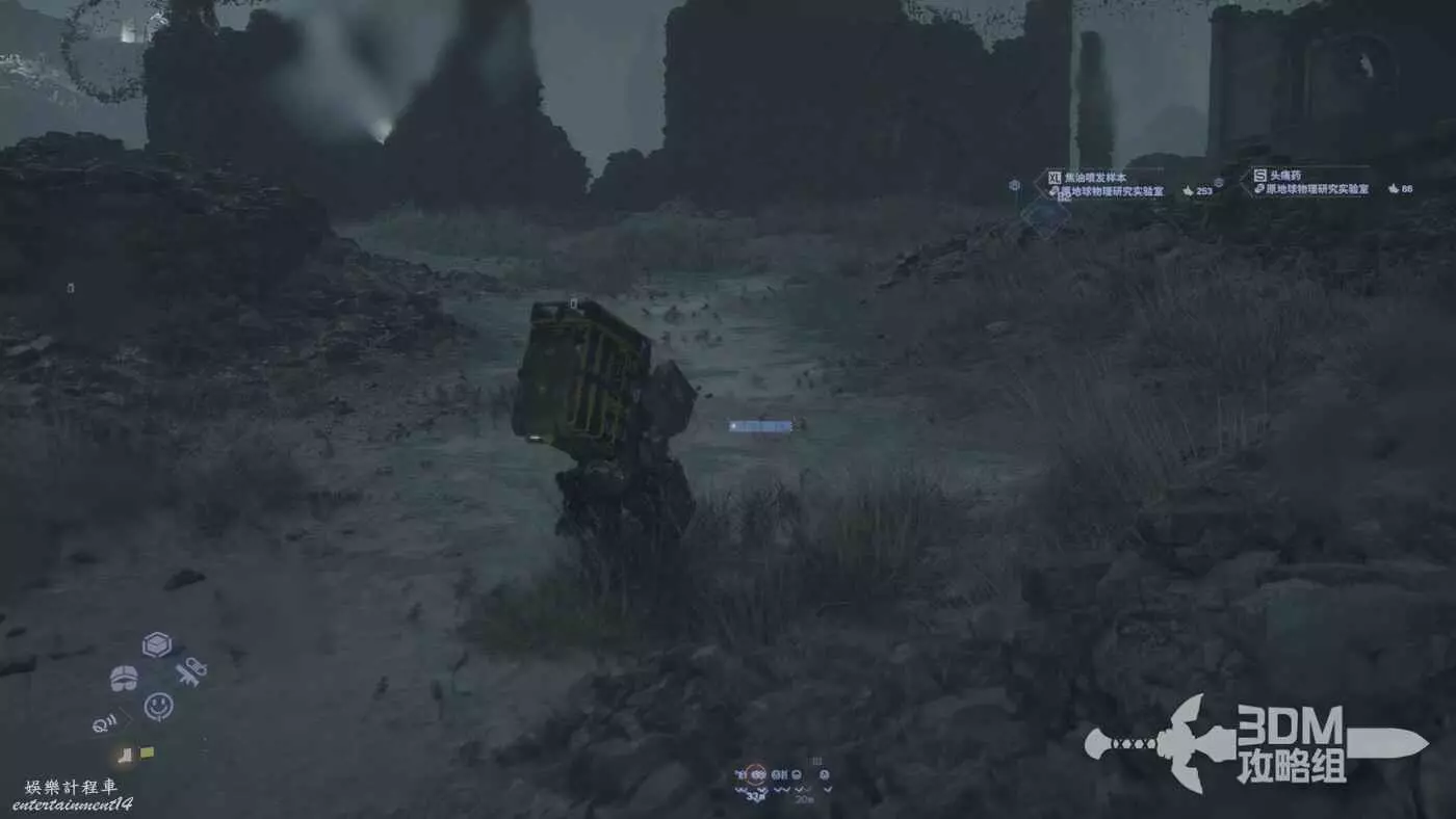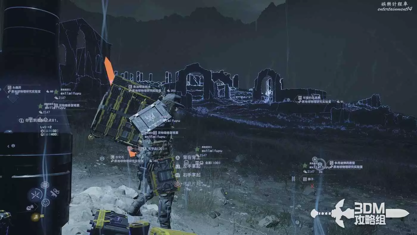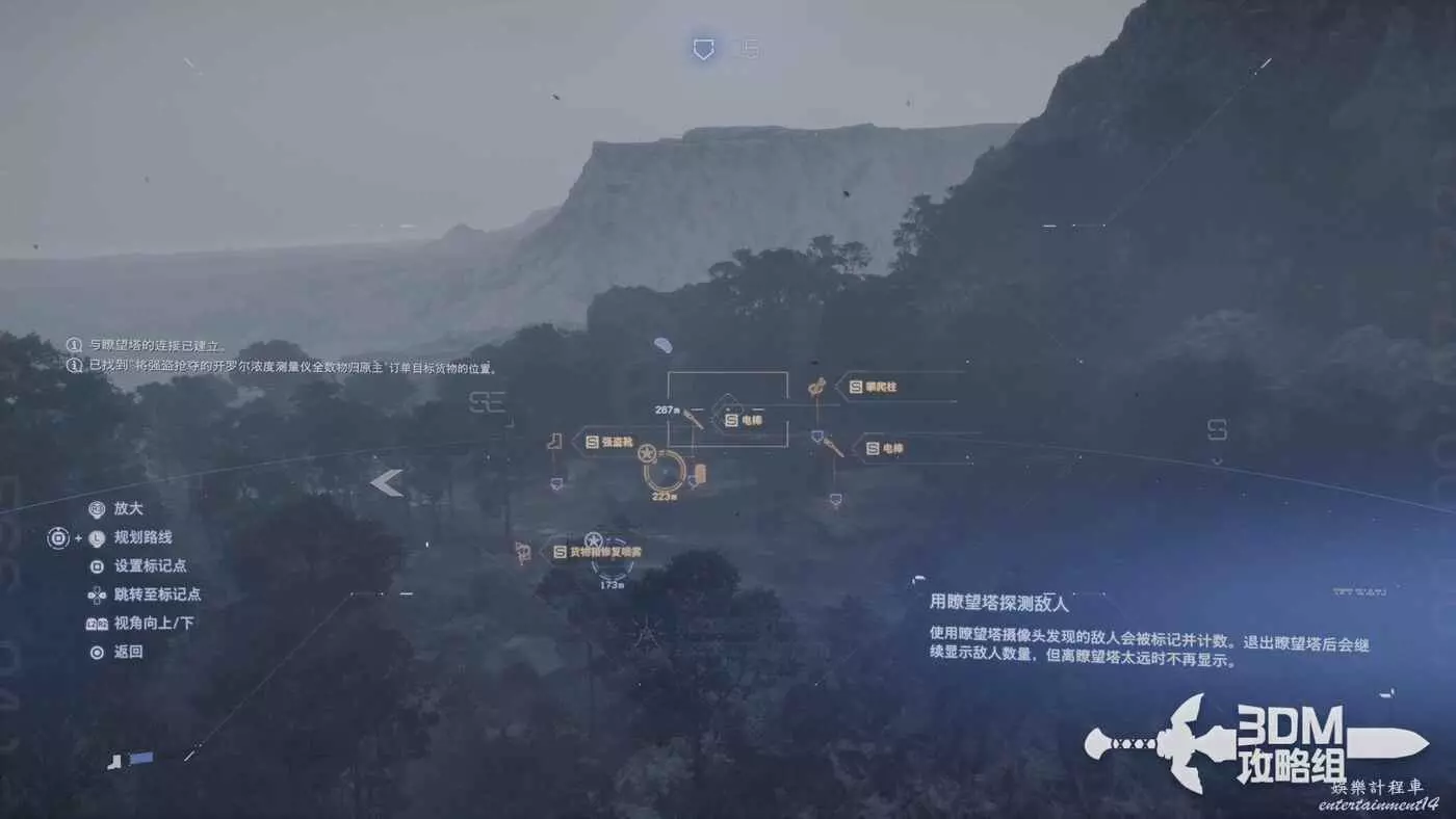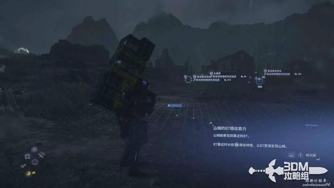 剛才我們在地圖上標記了路線,現在按L1掃描也會顯示出路線,附近的遺失貨物也能被發現,遺失貨物是用來增加我們訂單完成的分數的,不過也不是強制的。