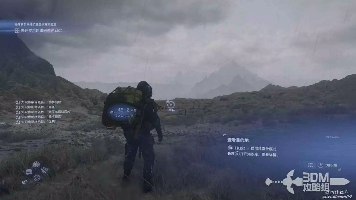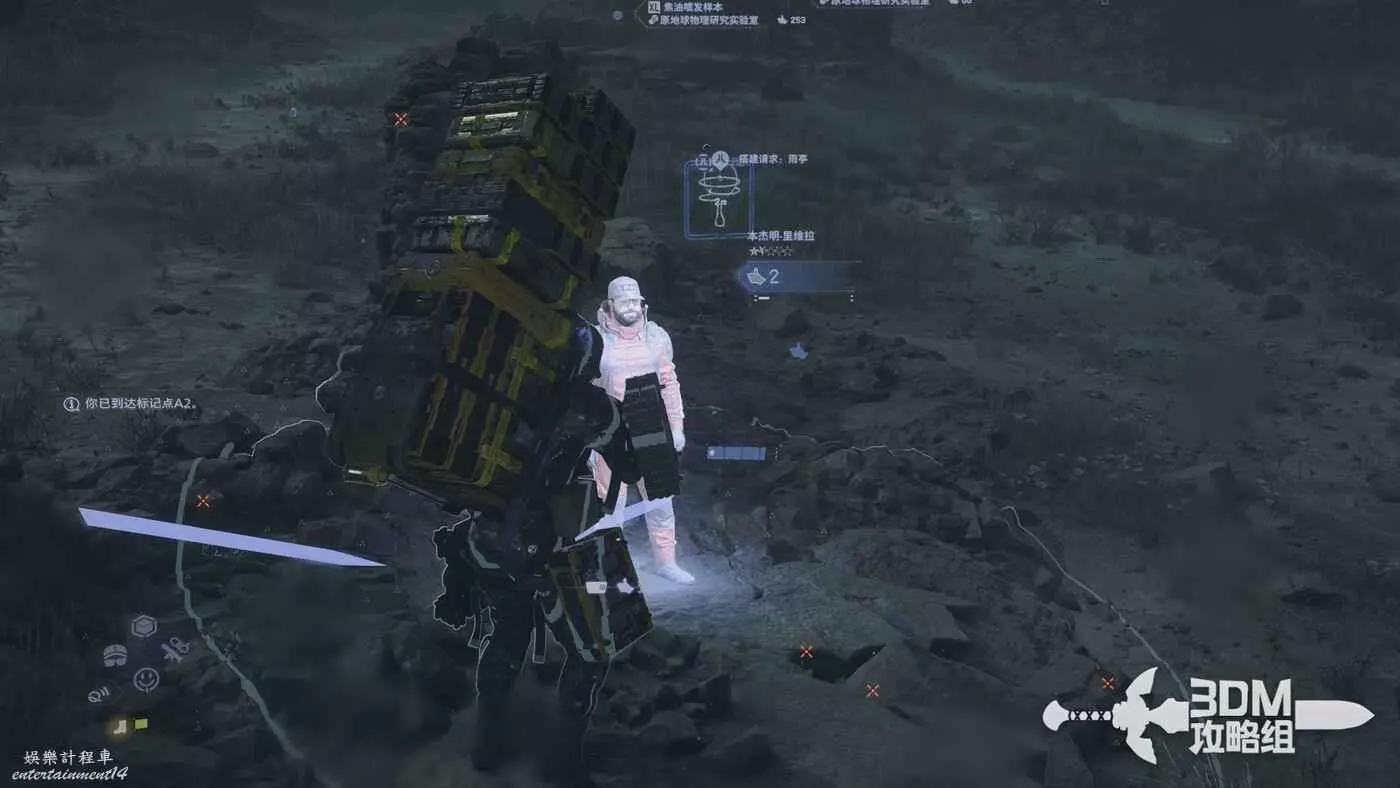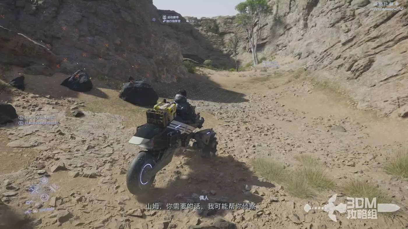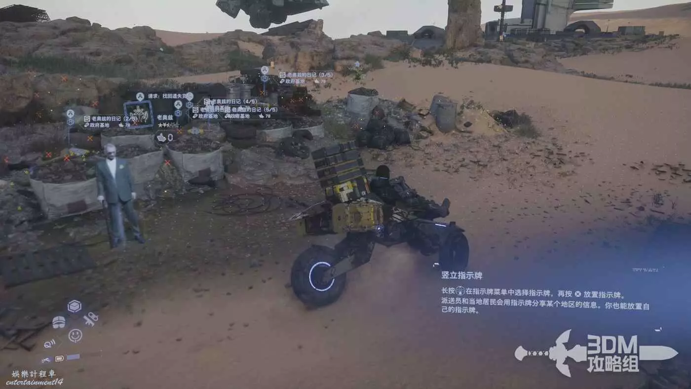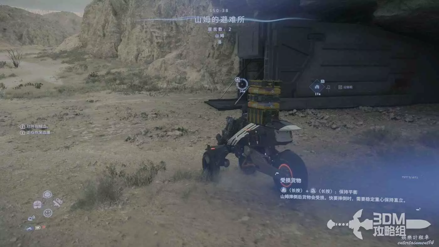 剛才我們在地圖上標記了路線,現在按L1掃描也會顯示出路線,附近的遺失貨物也能被發現,遺失貨物是用來增加我們訂單完成的分數的,不過也不是強制的。