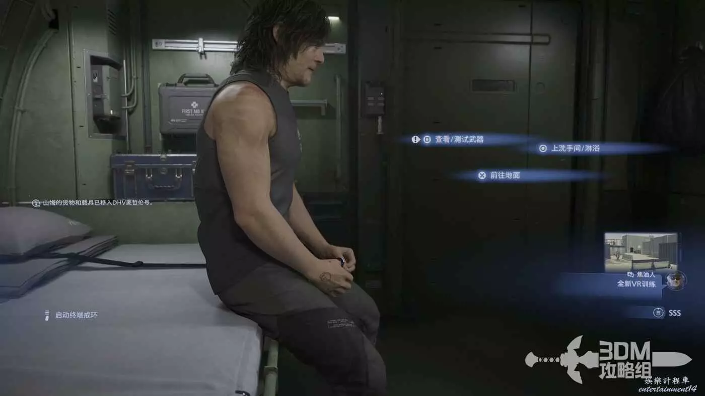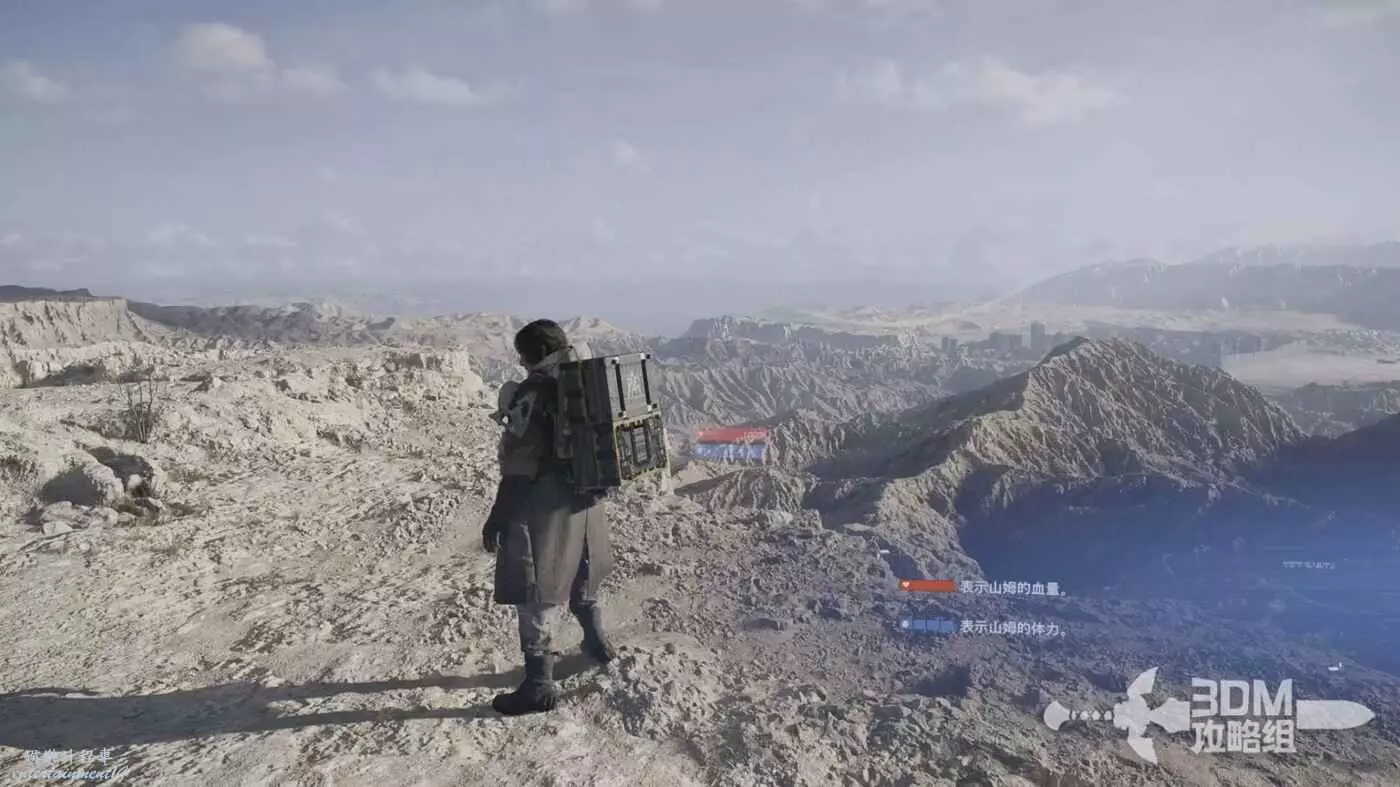 下面我們就可以正式操控山姆了。系統也會告訴我們紅條是血量,藍色的是體力。