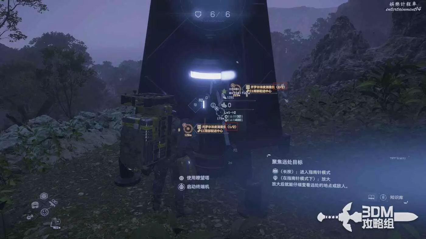 點按一下L1鍵可以掃描附近的地形,如果有敵人也會被標記。