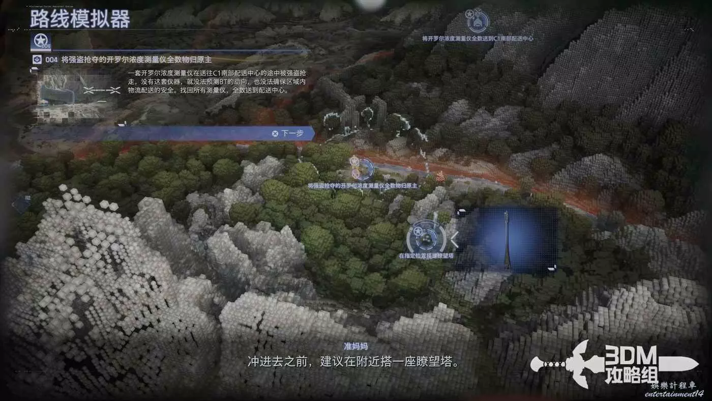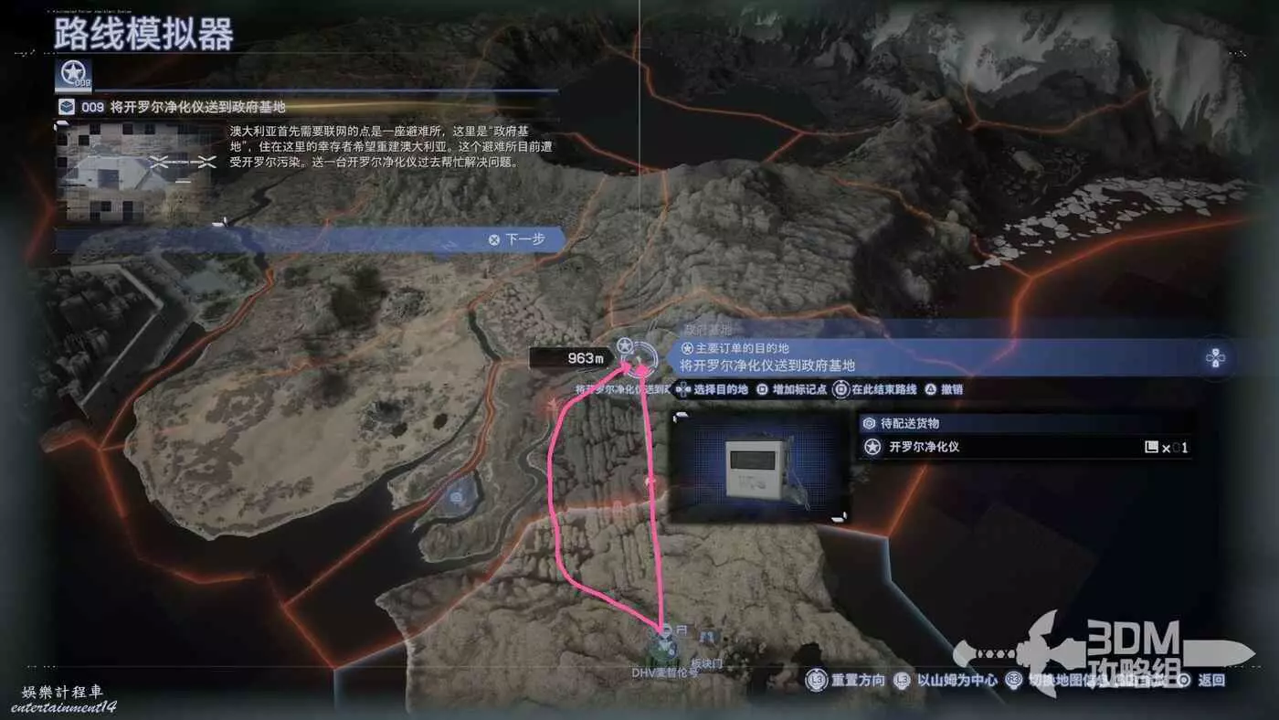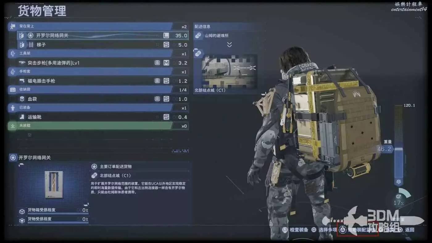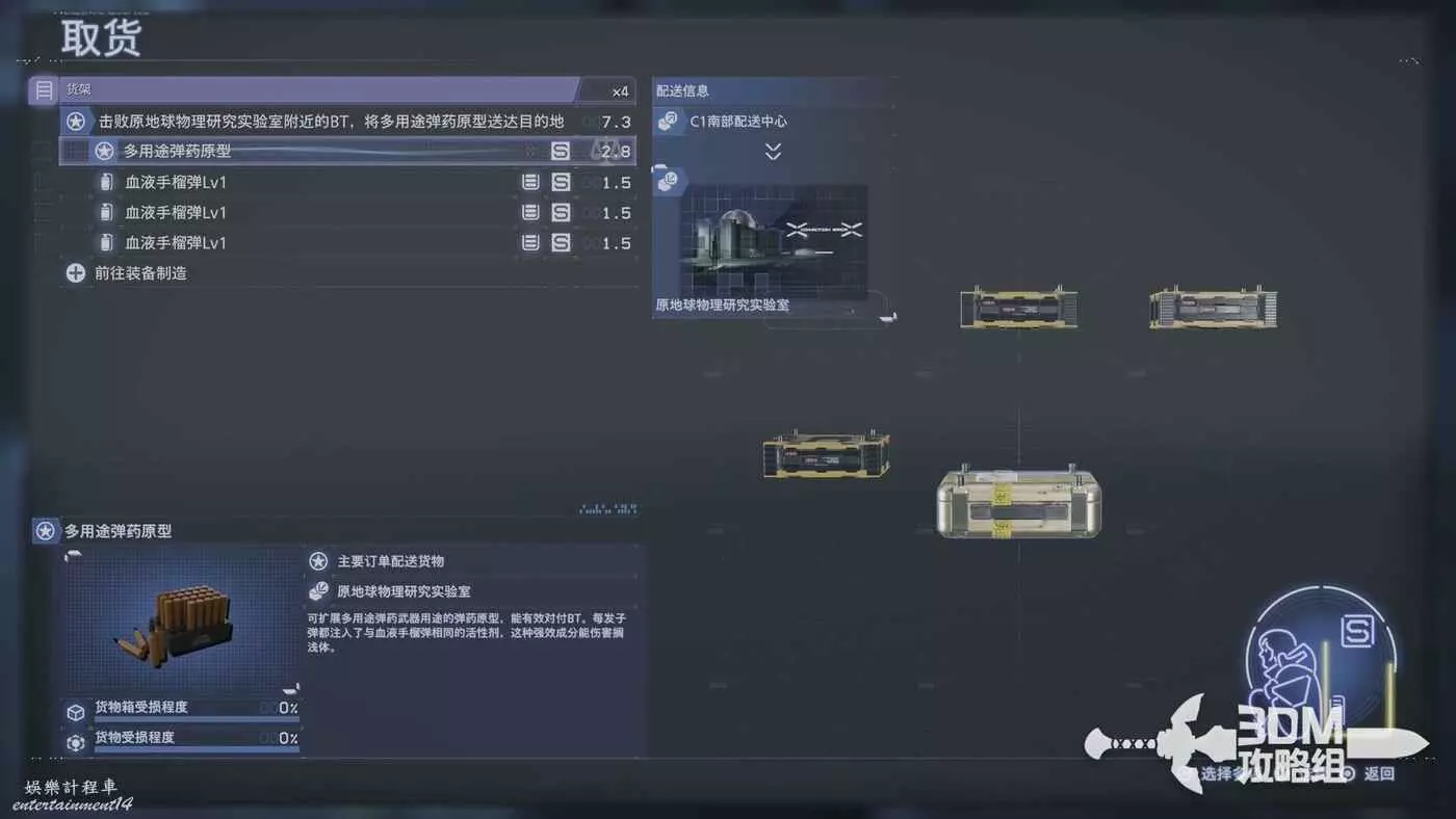 目標點很近,直線走即可,步行最好。這個任務是要直接去BT區的,我們乾脆把沒用的貨物全部卸下來,帶上裝備再出發。