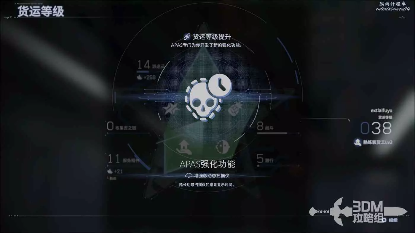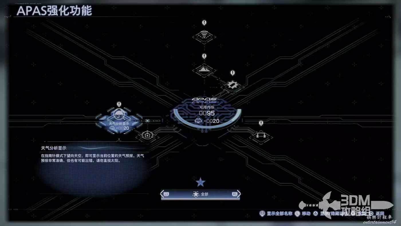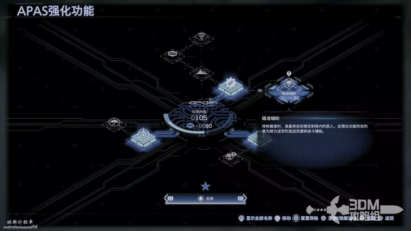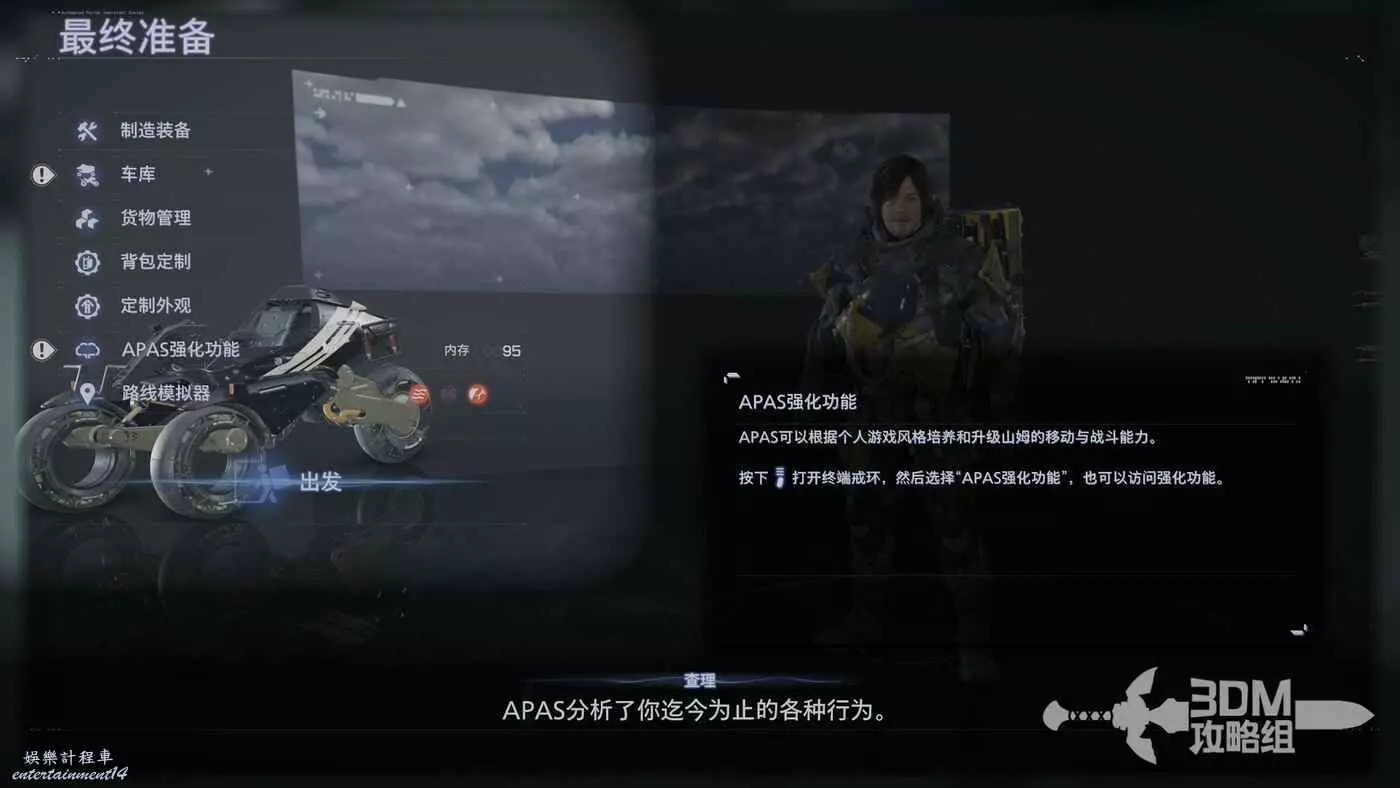 裝好貨物後,我們也解鎖了新的系統APAS強化功能,這個功能可以強化我們的移動和戰鬥能力。
