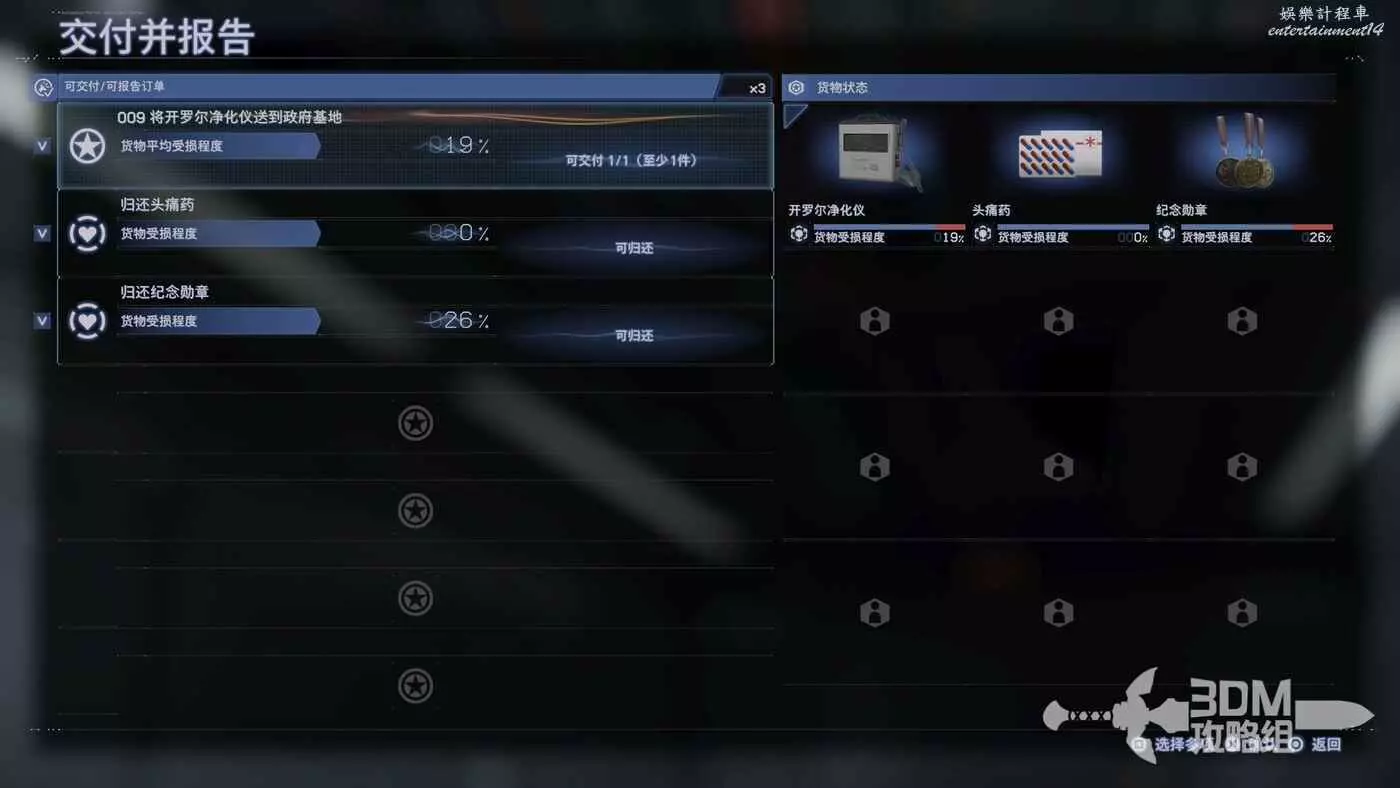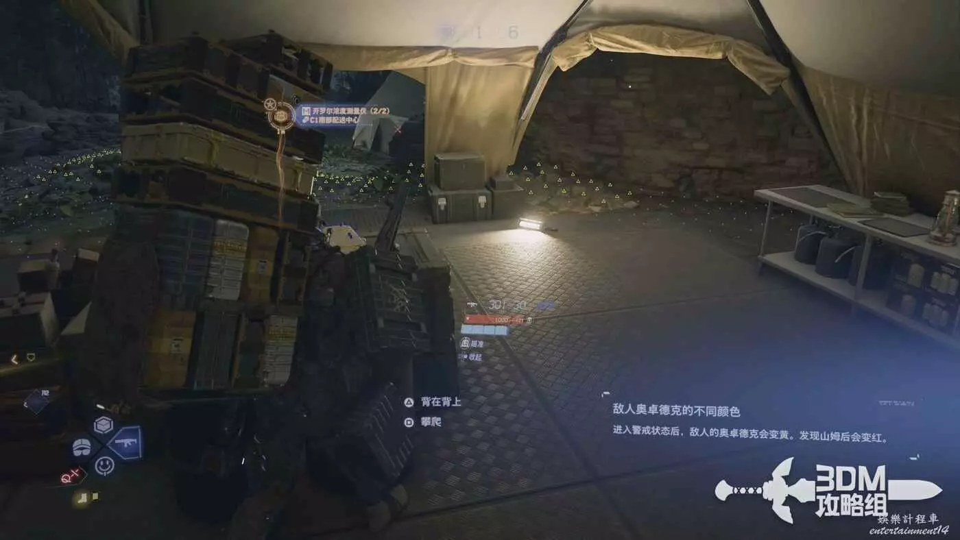 接著繼續主要訂單,營地裡的敵人較多,我們可以把不是戰鬥用的貨物放在車邊,長按十字鍵的上鍵就可以整理。