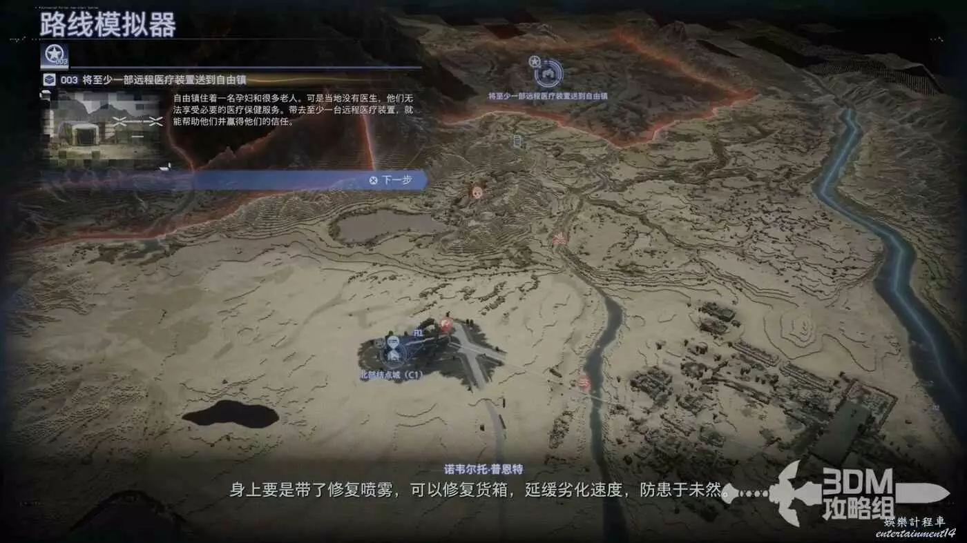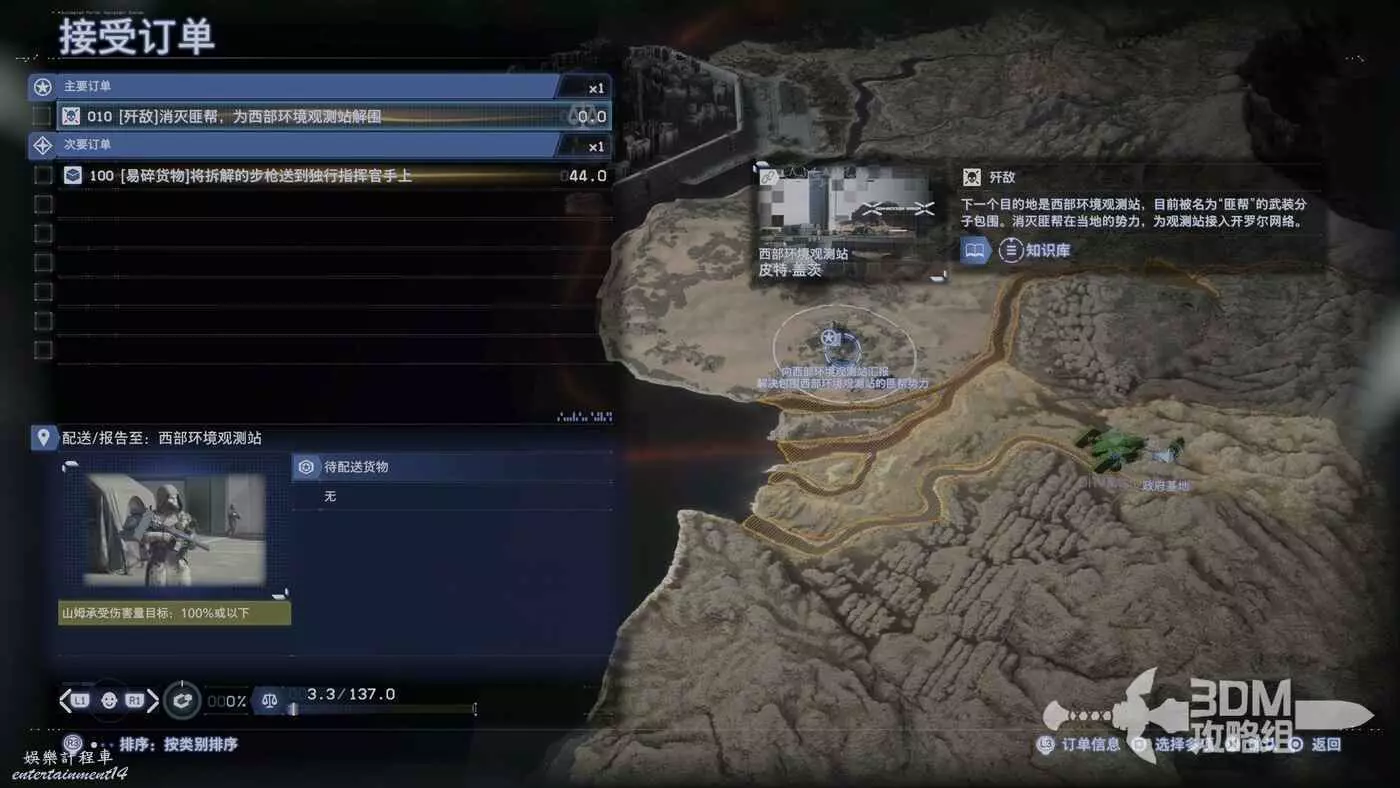 接取後,我們先去把剛才的附近任務給清了。這個任務的目標地點是我們剛才去過的政府基地,我們去西保結點之前可以先去交付。