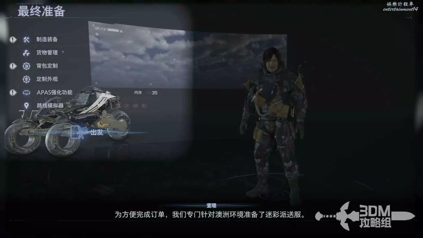 領取了NO.10訂單,進入準備介面,我們現在還可以自訂服裝了,解鎖了新的迷彩服。