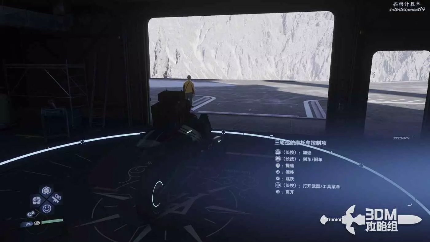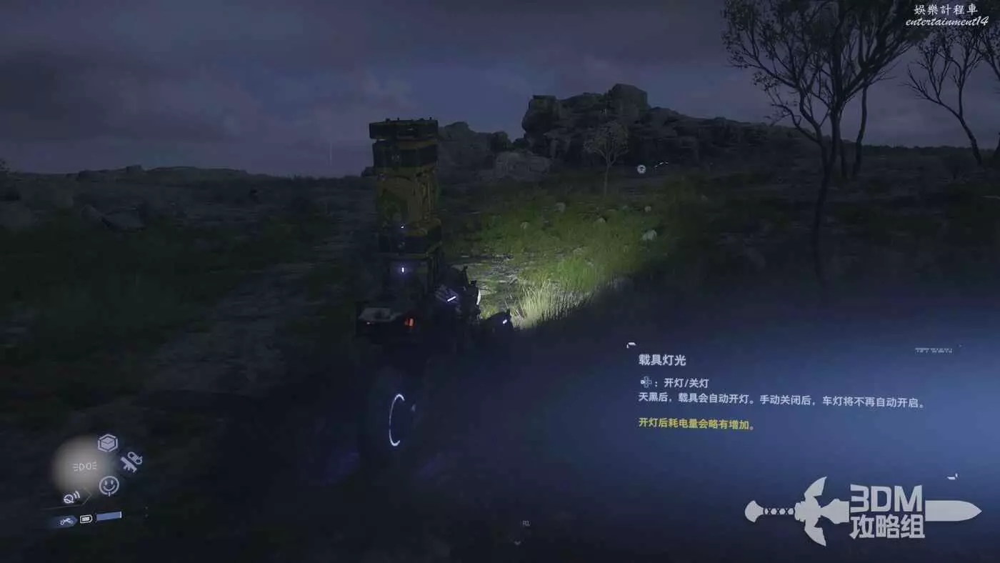 這個任務需要去敵人營地,所以最好還是帶上武器。開上我們的車準備出發,如果是晚上,也可以按十字鍵左鍵打開載具的燈光。