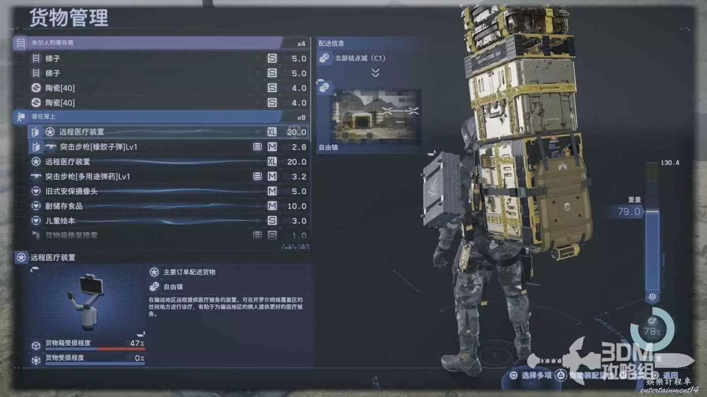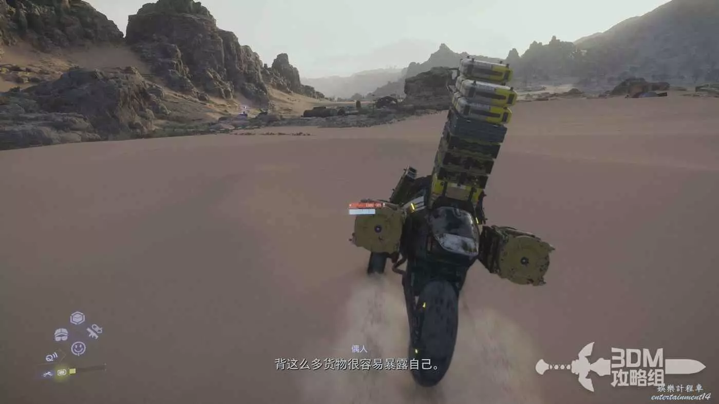 貨物的重心會偏移,我們按偏移方向的鍵位可以修正,長按L2或者R2,兩個一起按可以很穩,不過走路相對較慢。