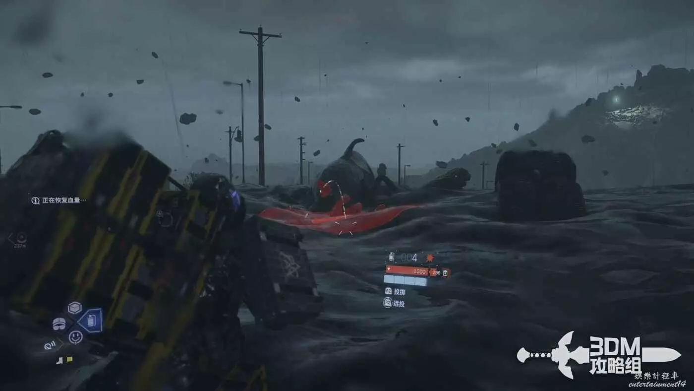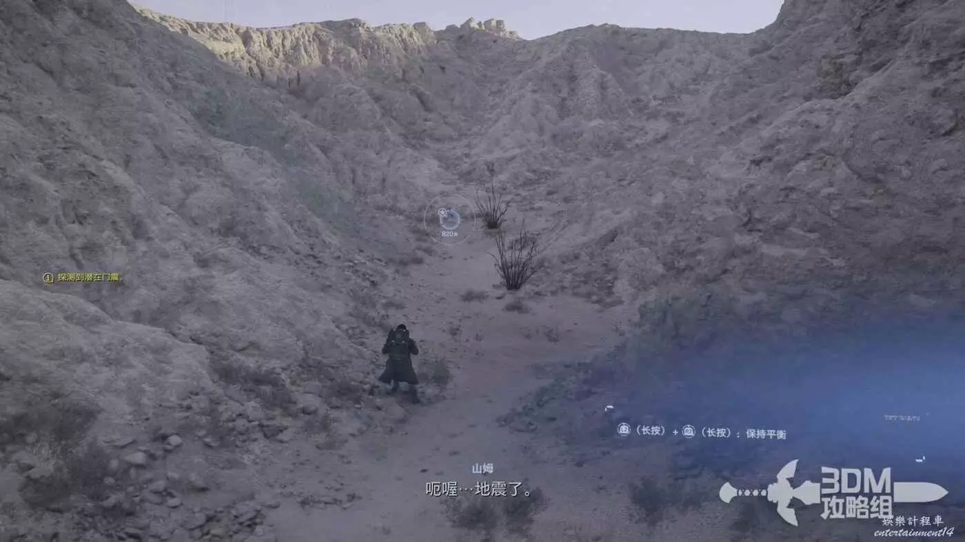 接下來跟著目標點走即可,走到一半會有“門震”(地震),我們可以長按L2和R2來保持平衡。