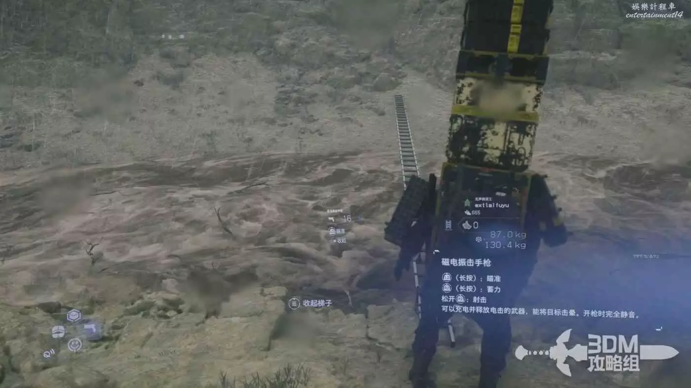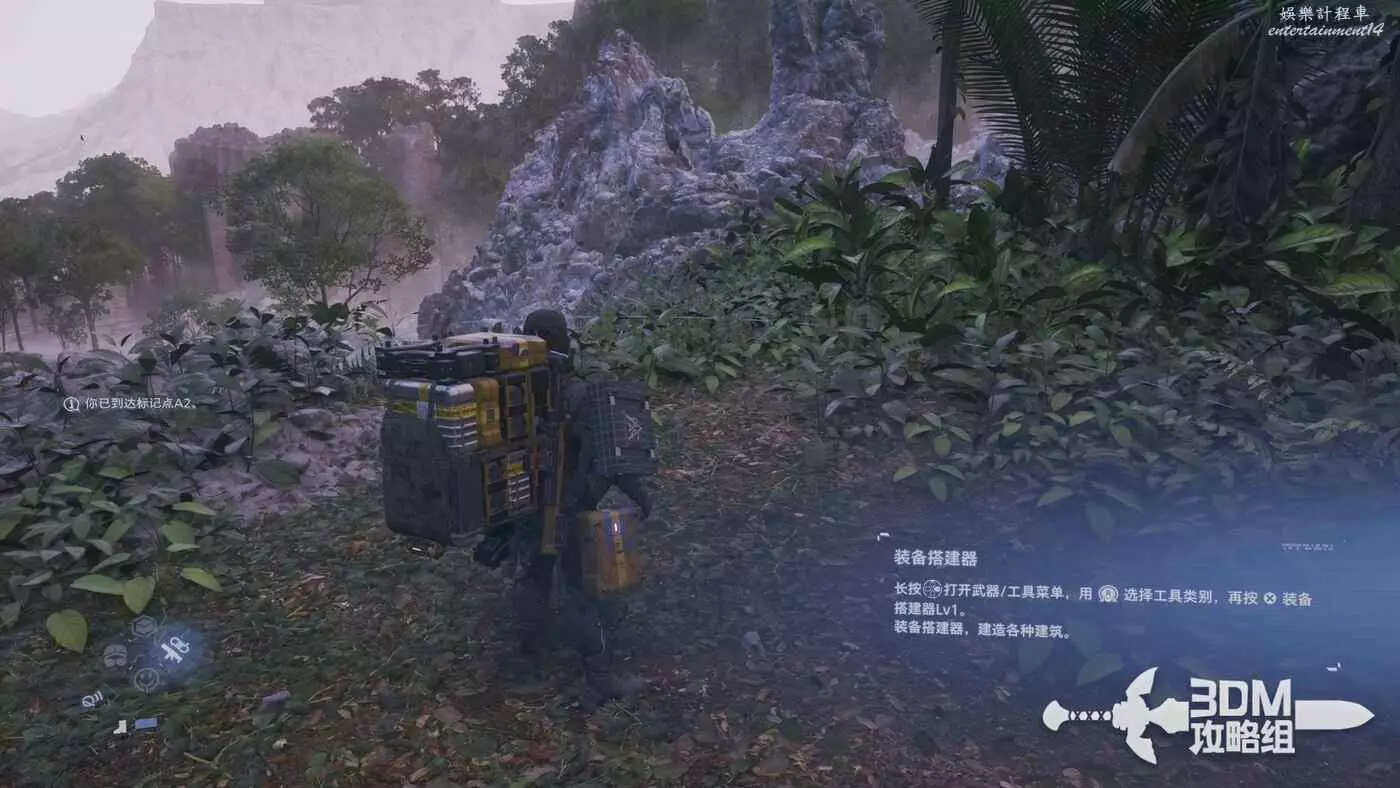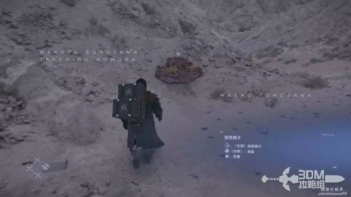 路上有不少的貨物可以撿,比如工具梯子,我們可以長按十字鍵的右鍵選擇梯子拿出來按L2鍵準備,選好位置後按R2放置。