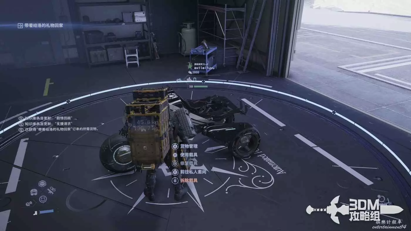 擊敗它後,我們去建築裡的終端交付任務,解鎖懸浮機LV1。