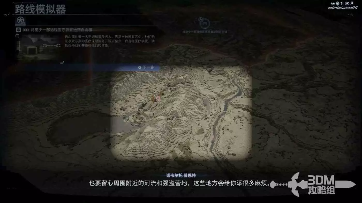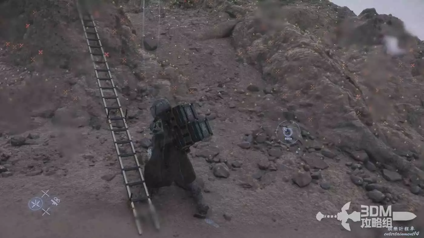 地圖上能看到一個很大的敵人營地,這次我們還是儘量貼著周邊走(筆者選擇的路線會過兩次河,不過從敵方的營地拿了梯子)。