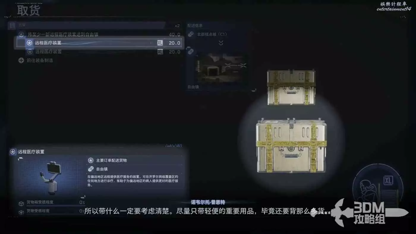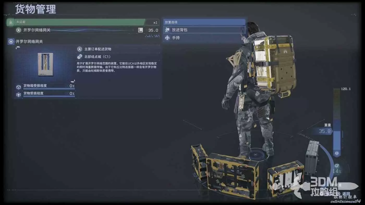 貨物管理裡面找到我們要運送的東西,將它放入背包。