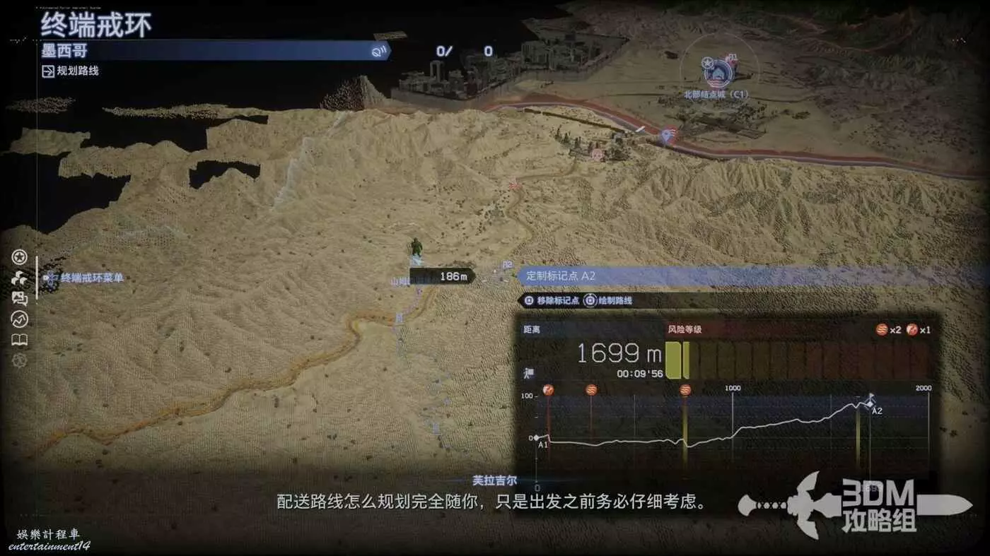規劃好路線還能看到地圖上的危險標誌,比如敵人或者河流都會以紅標標識出來。