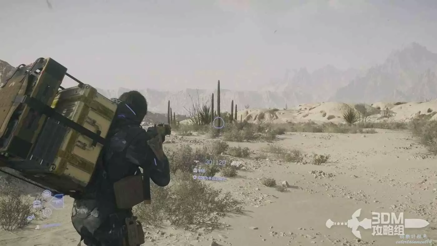 往前走,我們可以按十字鍵的右鍵切出武器,對著仙人掌練習一下。手把射擊不習慣的可以把輔助瞄準拉高點。