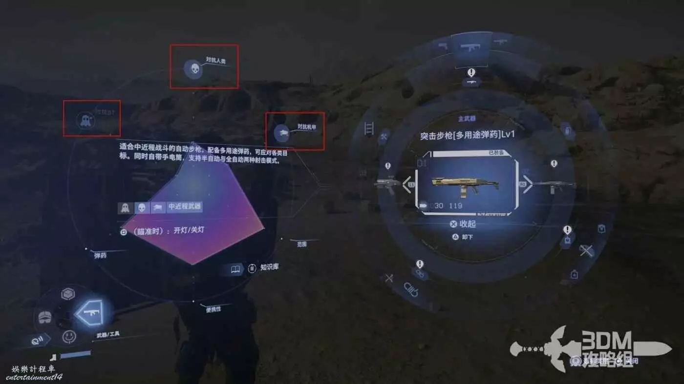 武器對於不同的敵人會有一樣的傷害效果,我們能查看左邊的圖示來判斷是否合適。