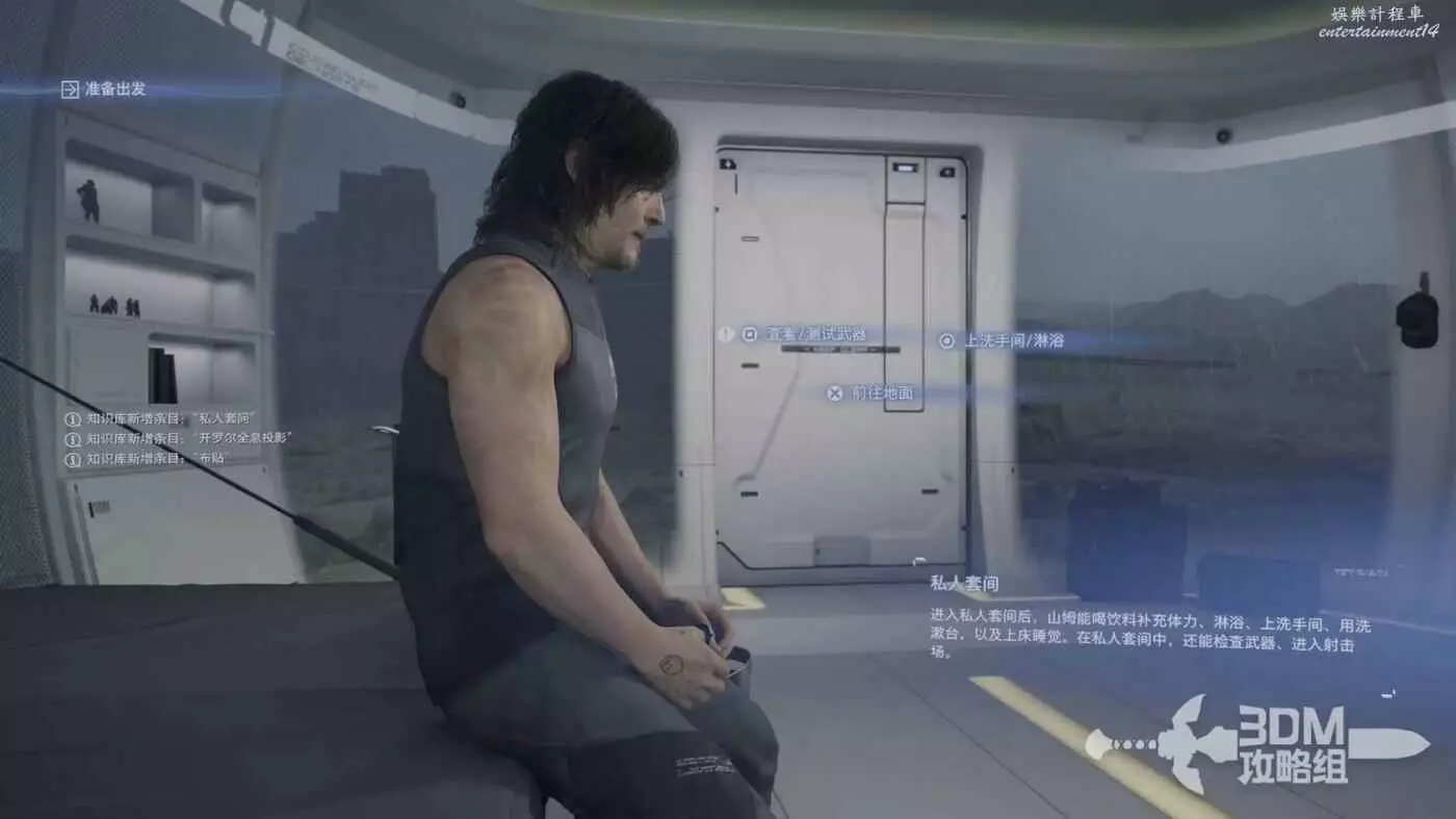 接下來會給我們介紹私人空間的用處,把房間裡的東西體驗一下,然後就可以對著門按X鍵前往地面了。
