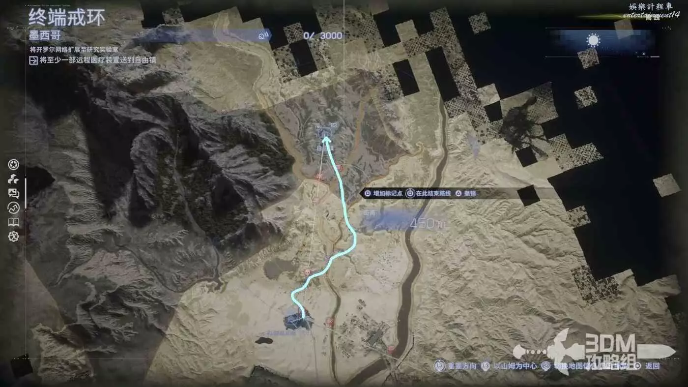 在地圖介面我們還可以長按方塊鍵規劃路線,第一個標點是起點,第二個標點是終點,別搞反了,儘量避開有敵人或者路難走的地方。