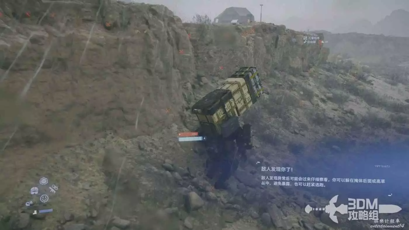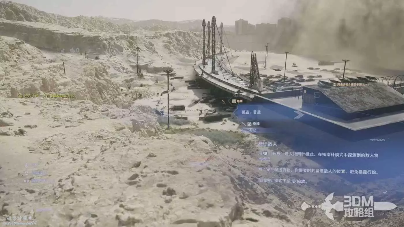 繼續往前走,我們走到半路大幾率會碰到敵人,短按L1可以掃出來附近的敵人位置,長按可以標記,在送貨的時候要特別注意,不要被搶了。