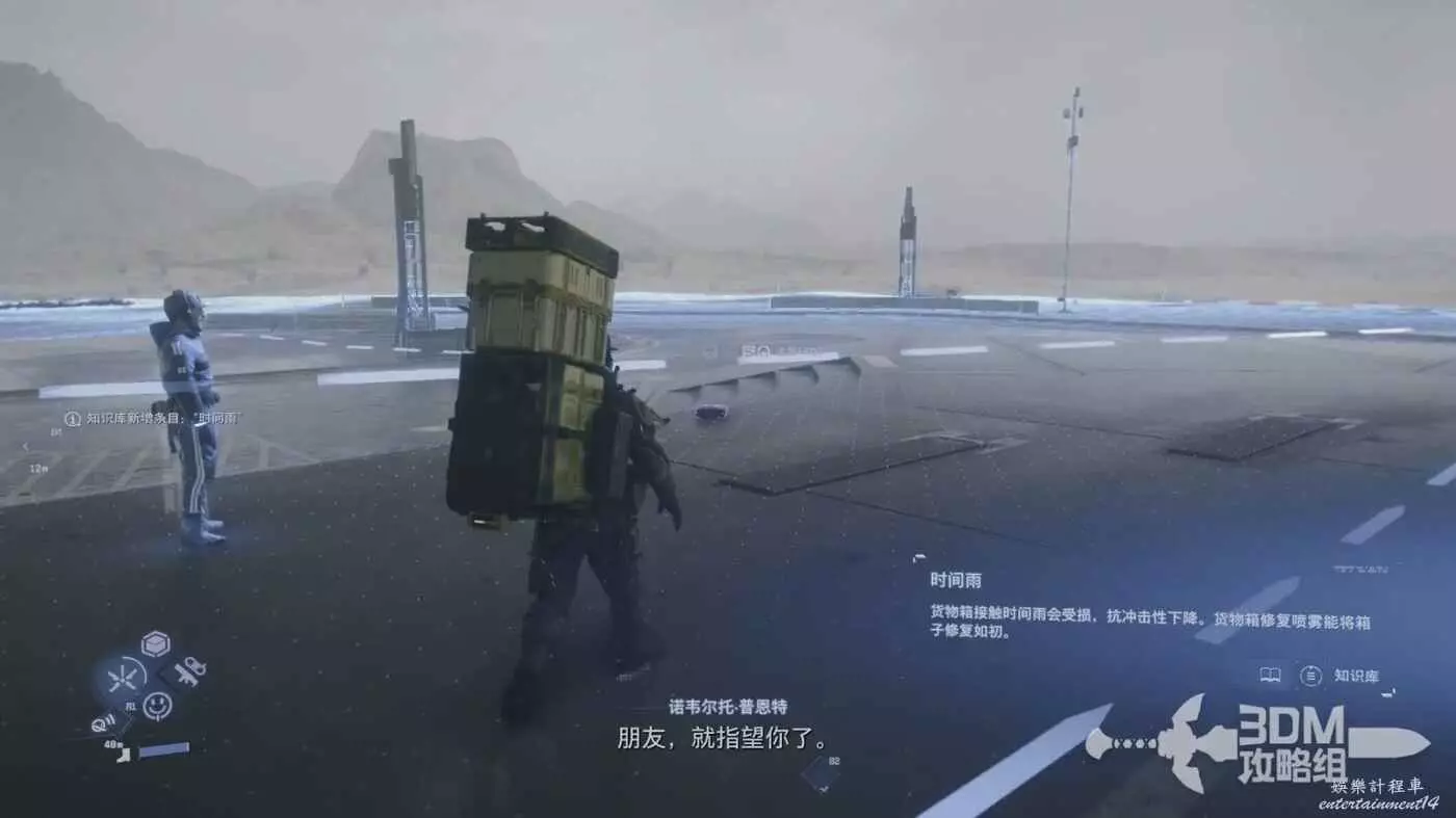 帶上貨物走到大門口,系統會給我們介紹時間雨,如果貨物長期接觸時間雨,抗衝擊性會下降,碰撞時容易損壞,不過可以用前面提到的修復噴霧修復。