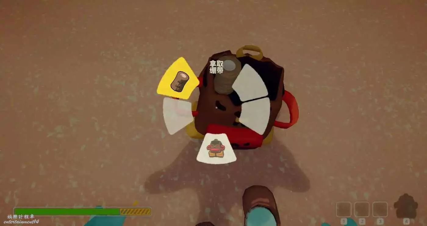 拿出物品背包的人和其他人取物品方式不同,背包的玩家需要先按4然後按Q丟下背包,然後長按E打開背包後滑鼠對準你想要的物品,鬆開E就成功取出了。