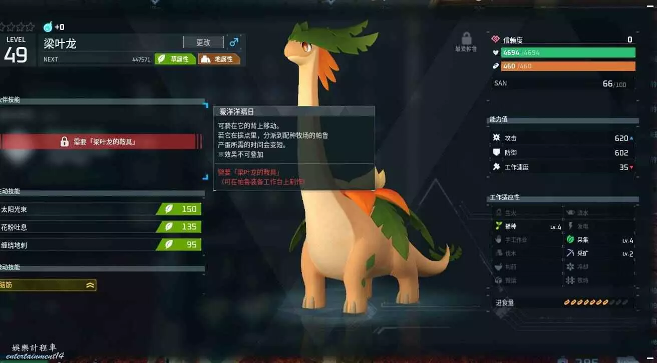 梁葉龍可以在綠洲孤島上捕捉,初始採集播種雙4,技能加快產蛋速度。