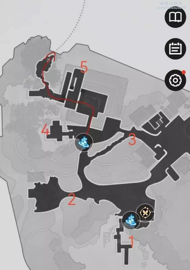 最後我們傳送到迷路迷境的傳送點,按下圖路線走