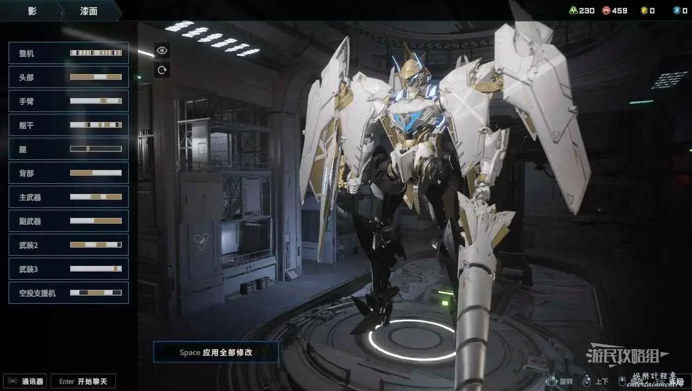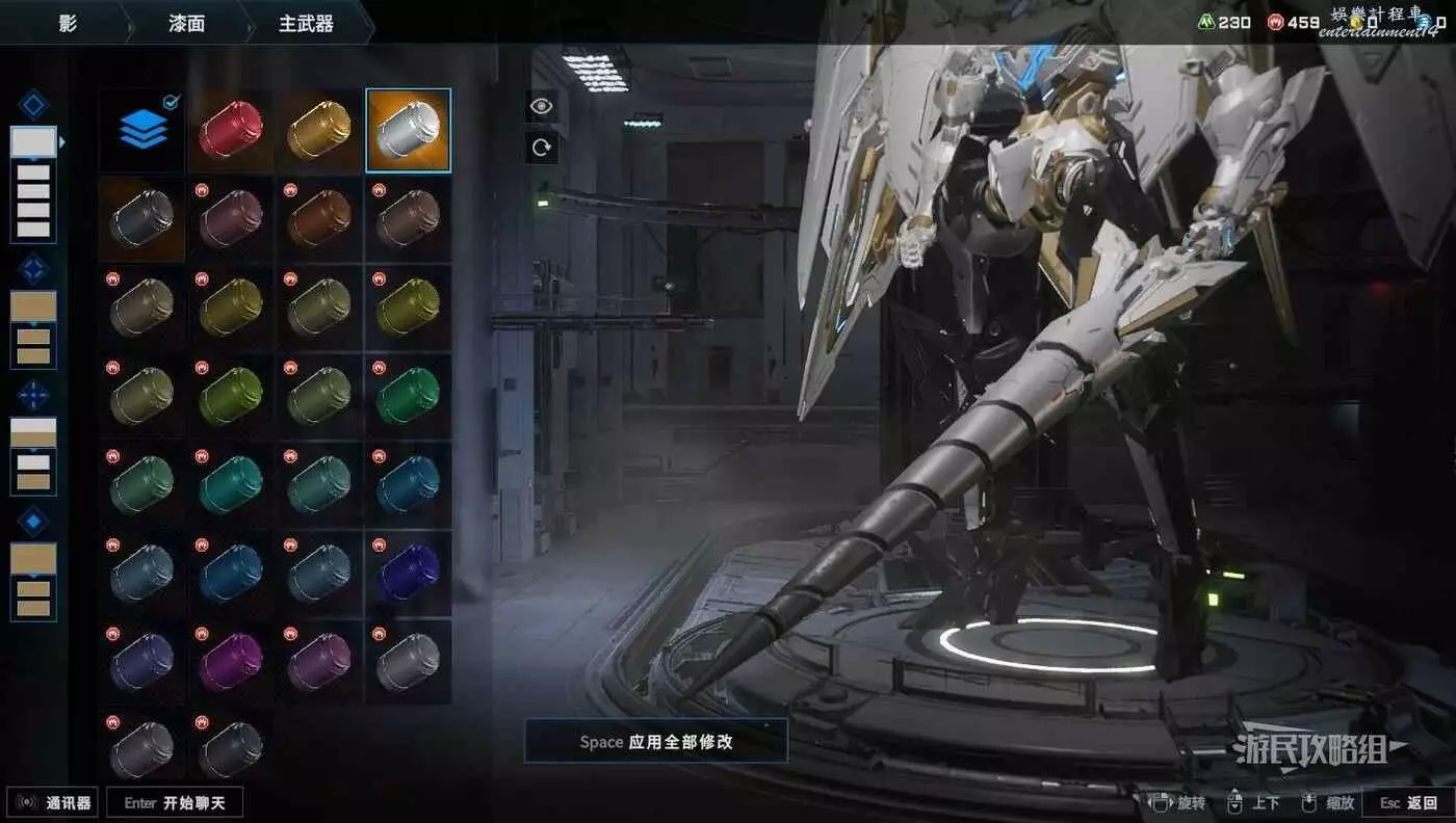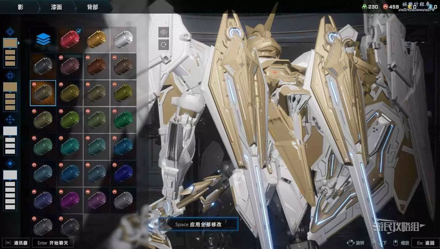 解限機 (Mecha BREAK) 黑豹皇冠塗裝參數及配色推薦 3 7 月 2025-07-03 廣告 作者:瑞破受氣包 來源:遊民星空 需要用到的顏色 淺灰、信號黑、暗影棕 整機預覽 頭部 暗影棕、淺灰 手臂 暗影棕、淺灰 軀幹 暗影棕、淺灰、信號黑 腿 信號黑、暗影棕 背部 淺灰、暗影棕 主武器 淺灰、暗影棕 副武器 淺灰、暗影棕 武裝2 淺灰、暗影棕、信號黑 武裝3 淺灰、暗影棕 空投支援機 淺灰、暗影棕、信號黑