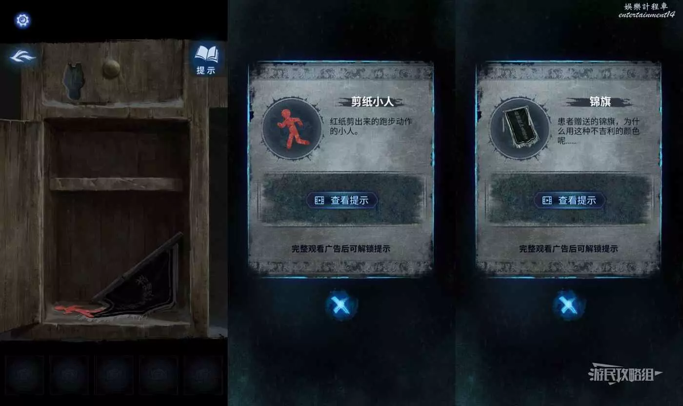 點擊櫃子裡的東西,拿到【剪紙小人】和【錦旗】。