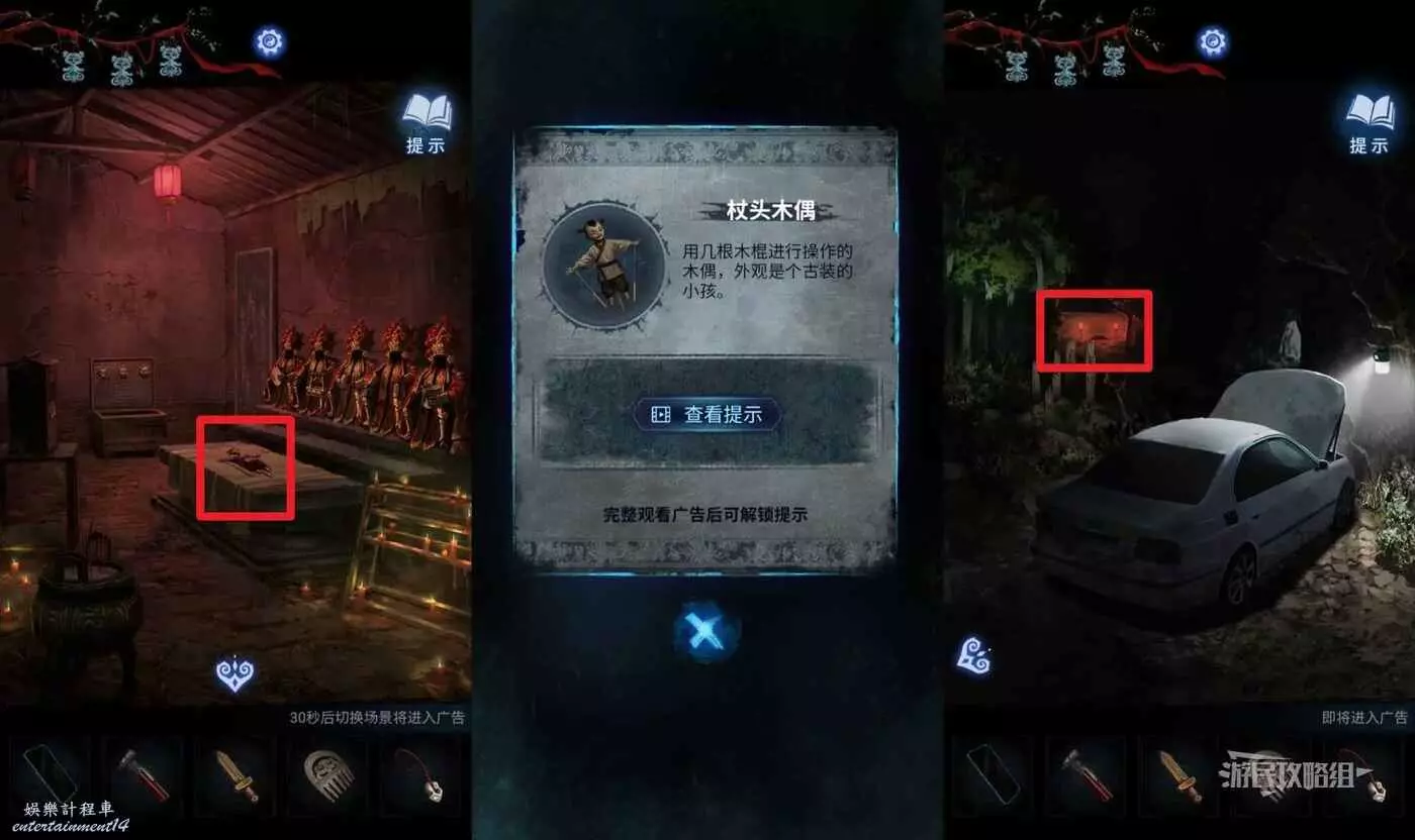 回到車旁邊進入【棄煞牢】,在道具欄中選擇【布袋木偶】(有音效小高能),觸發劇情。