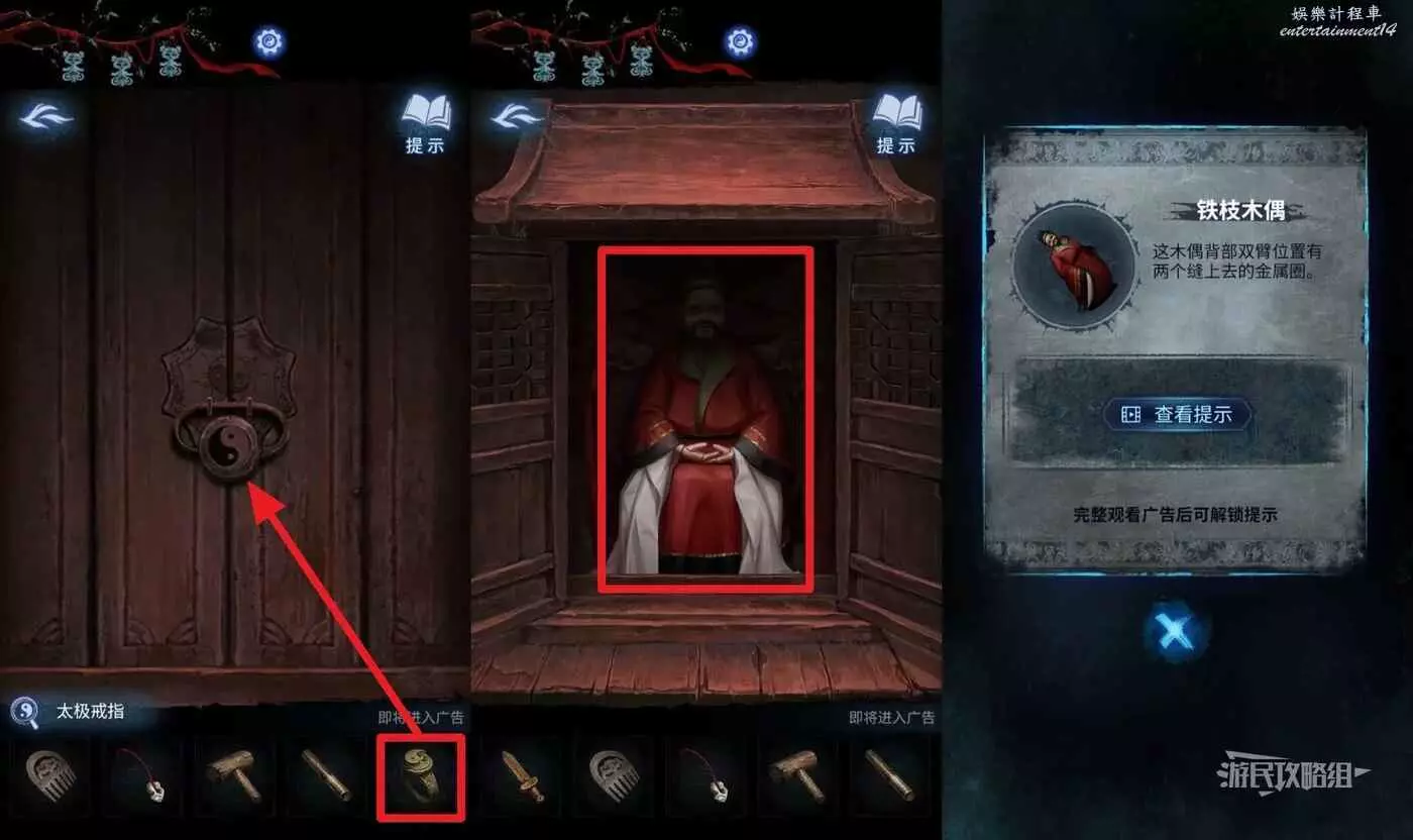 然後繼續在道具欄選擇【太極戒指】打開第二道門,拾取【鐵枝木偶】。