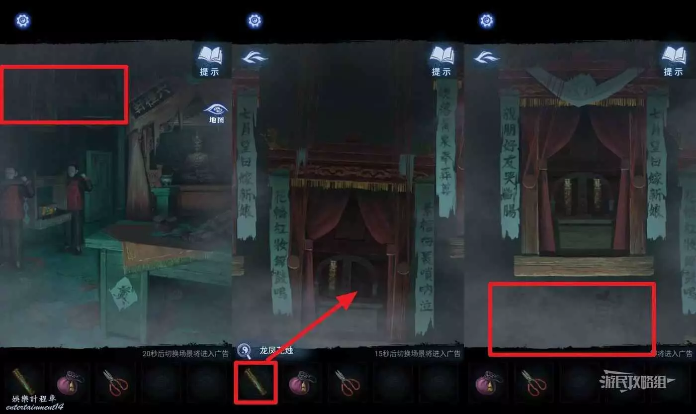 跟隨劇情來到紙人廟,點擊正上方牌匾後方,獲得【龍鳳花燭】。