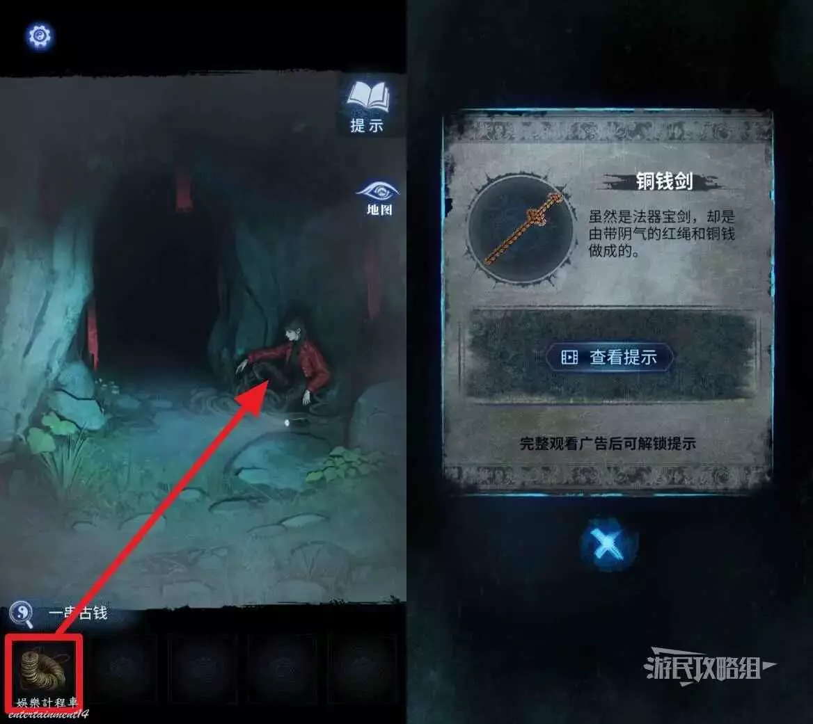 打開地圖前往【山洞】,在道具欄選擇【一串古錢】交給聶莫黎,獲得【銅錢劍】。